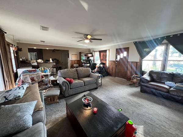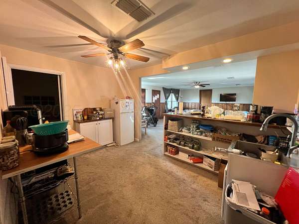 Come check out this beautiful country property in Briscoe County! This open concept home with attached garage includes 7 bedrooms, 3 full bathrooms, 2 spacious living areas, a steel reinforced storm room, and 2 staircases. The generous kitchen has a ceramic stovetop, double ovens, porcelain double sink, and a walk-in pantry. The home sits midway on 3 acres, with a 52' raised bed garden, many mature trees including 1 mulberry and 2 pecan trees, and space for livestock. A livestock fence surrounds the entire back portion of the property. The barn includes an upstairs storage area and an attached carport. If you're looking for quiet country living with picturesque sunrises and sunsets, this is the place for you! Call for your showing today!