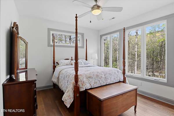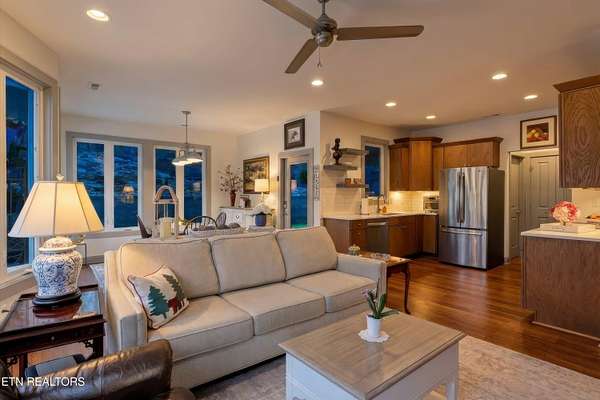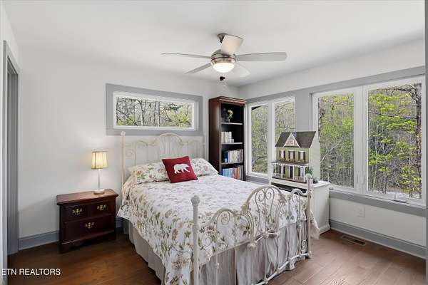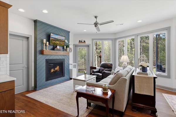 Some homes have a story. This one has a legend. Known affectionately as The Boat House, 233 Gap Cove Road is a one-of-a-kind custom home built in 2018 and designed to mirror the bow of a ship -- angled, intentional, and commanding -- as it gazes out over the neighborhood pond. It is the kind of property that stops people mid-sentence when they first lay eyes on it, and it only gets better the closer you get. Inside, rich hardwood floors run throughout the upstairs, luxury vinyl plank flooring on the main level covers sealed concrete beneath -- a design detail that speaks to the thoughtful, custom nature of the build. A gas fireplace anchors the living space with warmth and ambiance, making the home as cozy in the heart of winter as it is breezy and inviting come spring. The open-concept kitchen flows naturally into the living and dining areas, creating a connected, social layout that is as functional as it is inviting. Stainless appliances and a dedicated pantry give the kitchen real working utility, while a conveniently placed half bath and laundry room just off the kitchen keep daily routines running smoothly. The two-bedroom, two-and-a-half bath layout is intimate without feeling small -- every inch purposefully designed, meticulously maintained, and move-in ready. The primary en-suite is a particular standout, featuring a custom shower with two independent shower heads and separate handles -- a small luxury that makes a quiet but lasting impression. Step outside and the property opens into something truly rare for the East Tennessee market. Over five acres of private, wooded land wrap around the home, offering a level of seclusion that feels miles removed from the everyday -- even while tucked within a gated community. Just beside the dining area and carport sits Charlotte's Spring, a man-made water feature that adds a quiet, almost storybook quality to the daily rhythm of life here. The land itself is productive as well as beautiful. Multiple fruit trees and bushes dot the property, including goumi berries and paw paw trees -- a nod to the kind of intentional, land-connected living that is increasingly hard to find. A large storage shed keeps everything tidy and organized, a fitting touch for a property maintained with obvious pride. And then there is the wildlife. Turkeys wander through. Deer pass at dusk. The occasional bear reminds you that this is real Appalachian country -- wild, alive, and utterly unlike anything else on the market. The gated neighborhood provides security and community, but make no mistake: nature runs the show here, and that is precisely the point. The Boat House is not a home you find every day. It is a home you remember for the rest of your life.