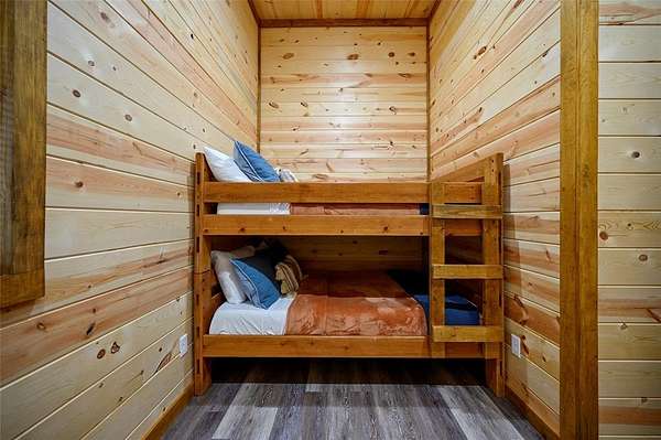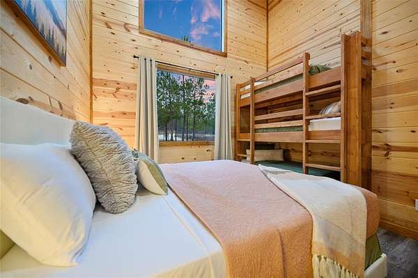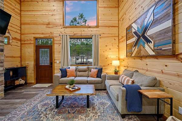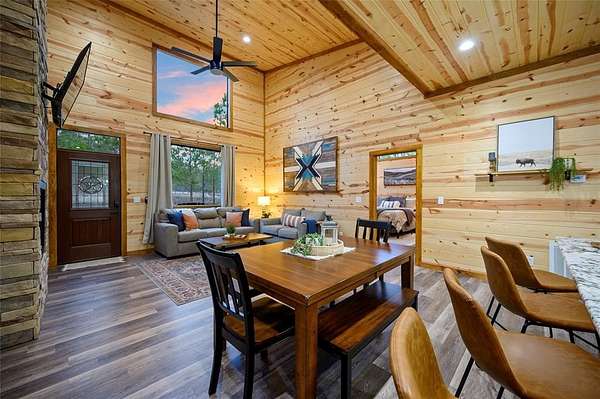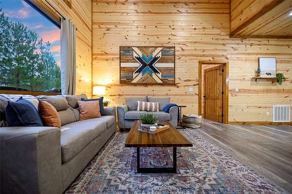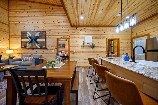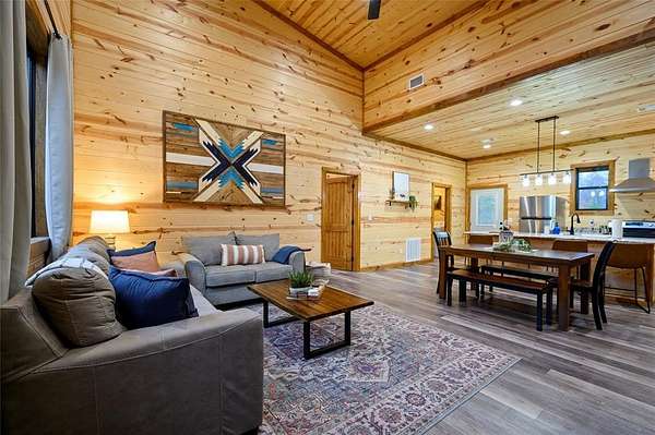 Welcome to Blue Buffalo Cabin, the perfect sanctuary in Broken Bow/Hochatown OK! Tucked away amidst pine trees, this inviting short term rental retreat provides a harmonious balance btwn the soothing embrace of nature and the warmth of snug comfort. Imagine you or your guests relaxing on the porch with a warm cup of freshly brewed coffee, inhaling the crisp scent of pine in the air. After your adventures, unwind by the fireplace or come together around the fire pit for delightful s'mores beneath the starry sky. Blue Buffalo, a newly constructed cabin in a secluded location, perfect for those looking to relax and unwind in nature. With two king beds and bunk beds, the cabin is particularly well-suited for two families traveling together. Featuring 3 bedrooms and 2 bathrooms, it provides plenty of space for everyone to sleep comfortably. The 1st bedroom has a king bed & en-suite bathroom w/ a walk-in shower, while the second bedroom has a king bed. The third bedroom has full sized bunk beds, making it a great option for kids or adults who want to sleep in a cozy space. The second bathroom has a tub-shower combination. The spacious living room has a fireplace, and a wraparound porch where you can relax and take in the natural surroundings. The outdoor deck has a hot tub, while the back yard has a campfire pit, perfect for cooking s'mores, soaking in the warm bubbles, or simply enjoying the peace and quiet of the great outdoors. The cabin is located on a cul-de-sac with a pull through driveway capable of fitting 2-3 cars. Plenty room for boat parking. The heart of Hochatown just a 5-10 minute drive, where you'll find unique local dining options. The Beaver's Bend Marina is just a 15-20 minute drive away where you can either rent a boat for the family, or launch you're own. Creative financing available. February 2024 - February 2025 this property has grossed $82k. For a YouTube walk through video & virtual walk through of this cabin, contact the Listing Agent