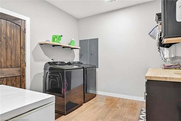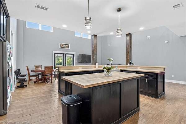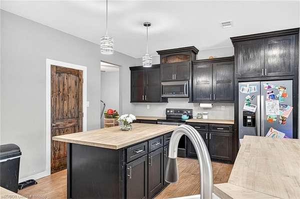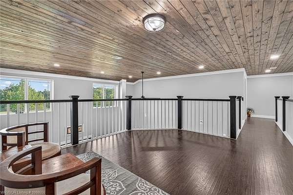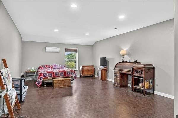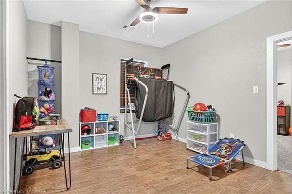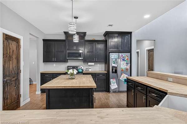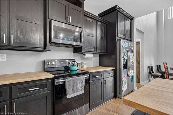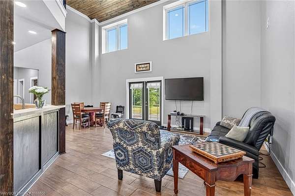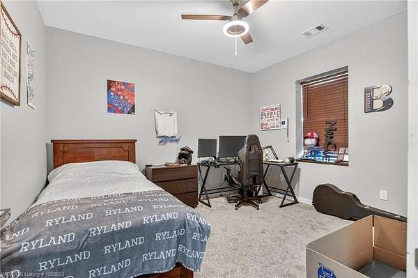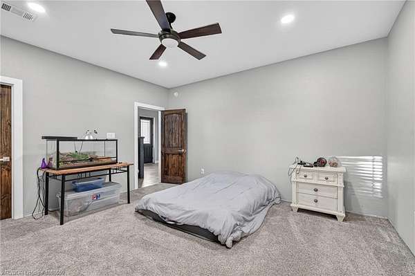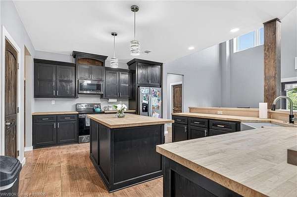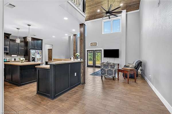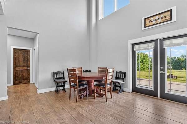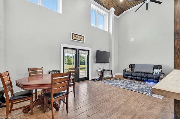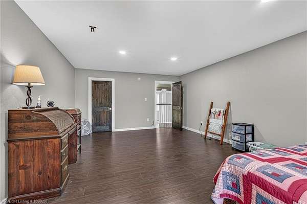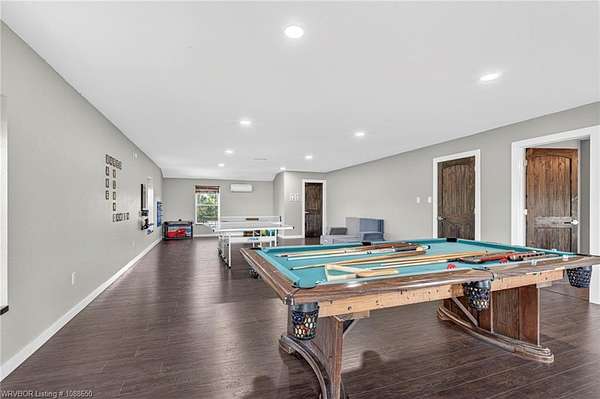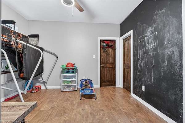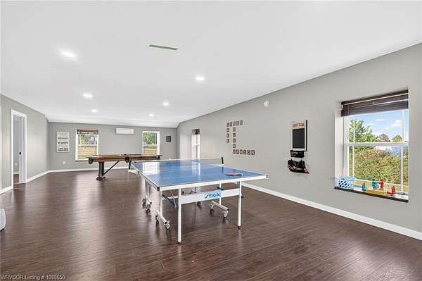 This stunning metal barndominium, built in 2021, offers the perfect blend of modern comfort and rustic charm across an impressive 4,250 square feet. Featuring 5 spacious bedrooms and 3.5 bathrooms, the home is thoughtfully designed for both everyday living and entertaining. A massive game room provides endless possibilities for recreation, while the tall, wood-accented ceilings create a warm, open atmosphere throughout the main living areas. The durable metal exterior is virtually maintenance-free, resistant to pests, and contributes to lower utility costs, adding both efficiency and peace of mind. Nestled on 3.49 scenic acres, the property offers privacy and room to roam, all while being located in the highly sought-after Alma School District-making it an ideal retreat for families seeking space, style, and convenience.