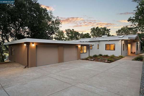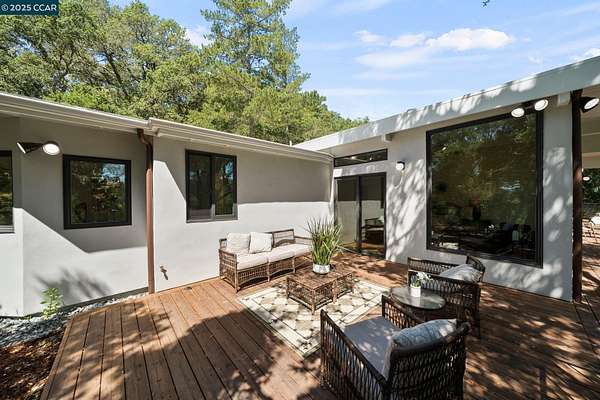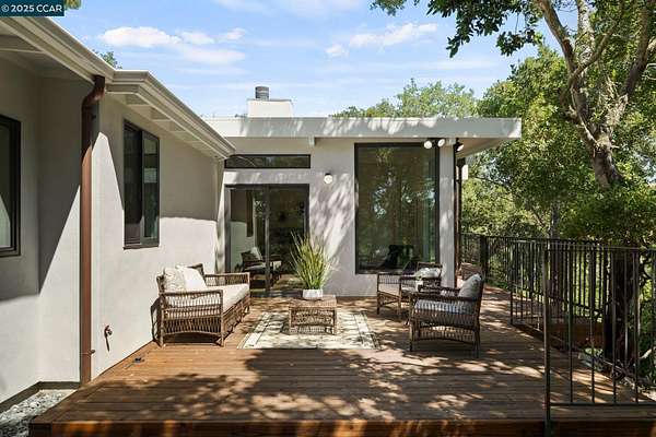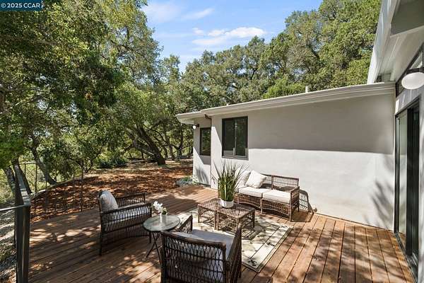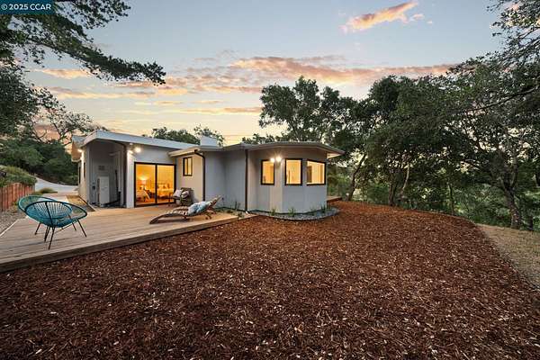 Use 119 Melody for correct directions!! Fully remodeled single-level mid-century modern masterpiece nestled in the serene foothills of Orinda. Enjoy the elite k-12 public school system that Orinda offers. Sweeping views of the hills and valleys, the sounds of nature, and the beauty of the local flora and fauna allow for an easy path to peace in this unique slice of paradise. Indoor/outdoor mid-century living and entertaining at its best! Floor to ceiling windows and 9 skylights fill the living space with warm natural light. The nearly 4 acre lot offers the owner unparalleled privacy and the opportunity for expansion; plant an orchard or vineyard, or extend the deck and add a pool. (ADU plans provided!) The chef's kitchen is fully equipped with stainless high end appliances including a 48" Sub Zero refrigerator/freezer, a 6-burner professional Wolf range, and quartz countertops. Just 15 feet from the attached garage to the kitchen counter. The remodel left nothing in question; low maintenance hardscaping, new roof and gutters, walls, windows and sliding doors, appliances, Phylrich and Grohe fixtures, decking, siding, kitchen, bathrooms with programmable radiant heated floors, flooring, gas lines, water lines, and a 7-zone HVAC mini-split system.