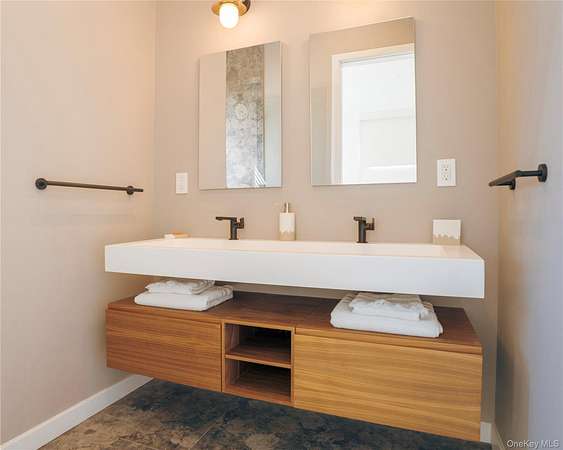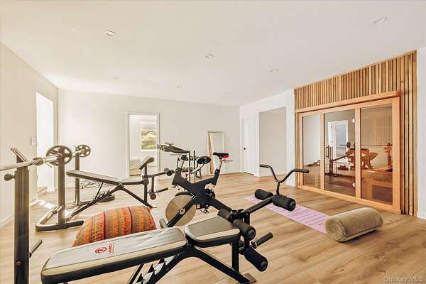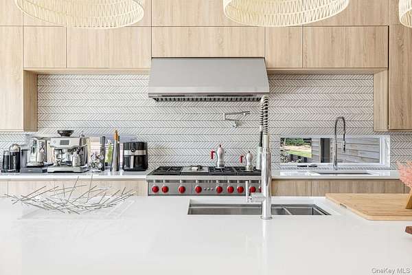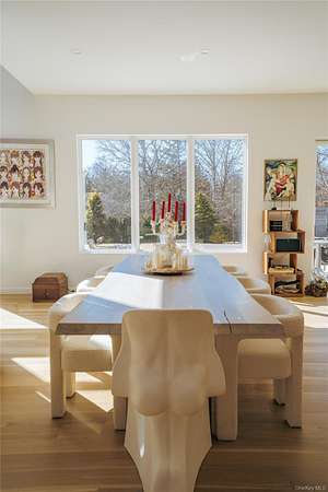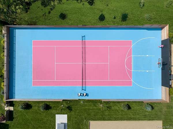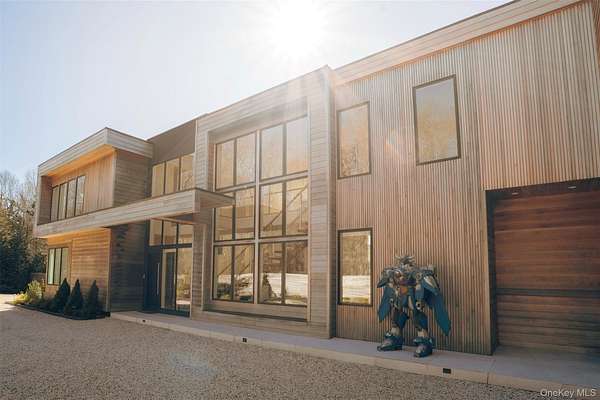 Step into a home where artistry meets architecture, where light dances across carefully curated designer finishes, and where every space is crafted for inspired living. The Interiors designed by a notable creative mind, this 8,627 square-foot contemporary sanctuary is a rare opportunity to experience luxury as an art form. This six-bedroom, six-and-a-half-bath home is more than just a place to live; it is a destination for time with family, wellbeing and creativity. The first floor offers double-height ceilings with floor to ceiling windows, seamlessly blending indoor and outdoor beauty. A wood-burning fireplace anchors the living space, which connects to the chefs kitchen designed for both charm and function; in addition 2 en-suite bedrooms, guest bathrooms and storage areas. The second floor offers 2 additional en-suite bedrooms and an art studio office provides the perfect canvas for inspiration, while the lower level unfolds into a private wellness haven-a recreational space complete with a fully equipped workout room and a six-person sauna, and 2 additional en-suite bedrooms. Outdoors, the home transforms into an entertainer's paradise. Offering an oversized heated gunite pool, Spa, Tennis court, Volleyball, Basketball and Bocce offer opportunities for play. The expansive deck, outfitted with outdoor TVs, sets the stage for evenings under the stars, gathered around three outdoor fire pits, high end Italian pizza oven and barbecue grill. Thoughtfully designed with solar panels, it harmonizes elegance with energy efficiency, ensuring that beauty and environmental consciousness go hand in hand. all perfectly situated on almost 2 acres of private property, a stone throw from the village, beaches and restaurants.