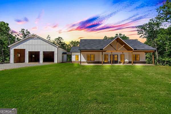 Welcome home to peaceful country living with modern style and privacy. This newly completed 3-bedroom, 2.5-bath home sits on a private 3-acre lot, offering the perfect balance of comfort and tranquility. Inside, you'll find a bright, inviting atmosphere. The cozy electric fireplace serves as a warm focal point, perfect for relaxing evenings or entertaining guests. Outdoor living is a standout feature with a massive 600 sq ft covered back porch, ideal for gatherings, grilling, or simply enjoying the quiet surroundings. A large, covered front porch enhances curb appeal and provides a welcoming spot for morning coffee or watching sunsets. The oversized 1,600 sq ft, 3-car garage provides exceptional flexibility, whether you need a workshop, space for a boat or RV, or extra storage. This beautifully finished home delivers modern comfort in a serene country setting-ready for you to move in and make it your own. Schedule your private showing today!
