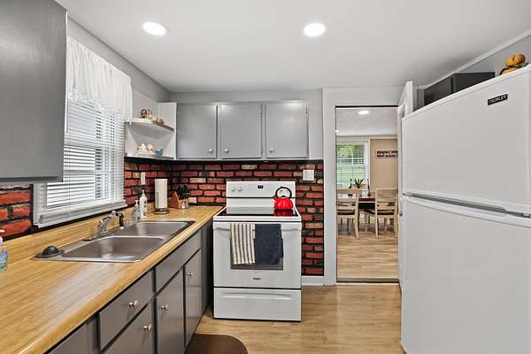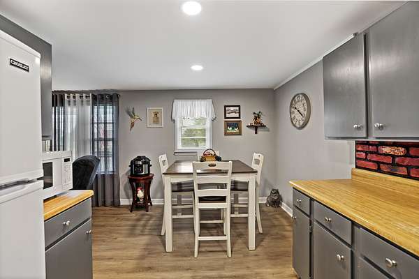 Recent Price Reduction!! Welcome to this charming 3-bedroom, 1-bath home set on 2 acres of peaceful countryside. With 1,516 square feet of living space, this property combines comfort, functionality, and plenty of room to spread out. A welcoming rocking chair front porch sets the tone before stepping inside to a cozy living room that flows into the eat-in dining area. The kitchen has been updated with stylish gray cabinets and butcher block countertops, offering both charm and practicality. Continue into the converted garage, now serving as a spacious den and formal dining room/flex space, perfect for entertaining or adapting to your needs. The home's three comfortable bedrooms share a well-equipped full bathroom, providing ample space for family or guests. Outdoors, the expansive 2-acre lot offers endless possibilities. A barn and additional outbuilding add utility for storage or hobbies. With so much open space, this property is ideal for anyone seeking a balance of comfort and country living. Up to 1% lender credit on the loan amount when buyer uses Seller's Preferred Lender.