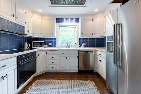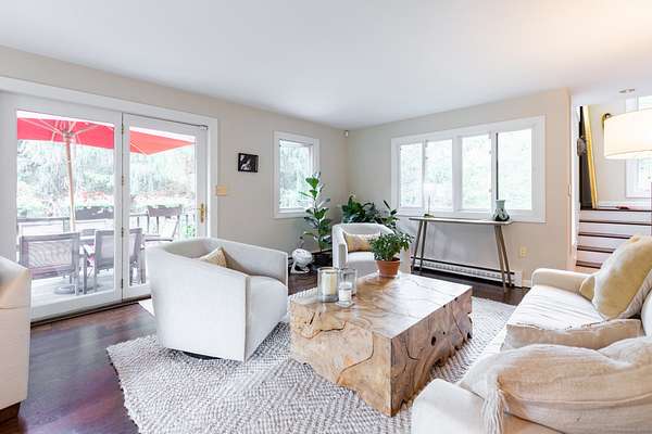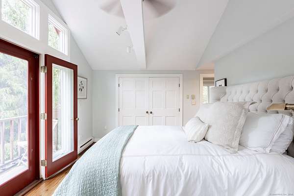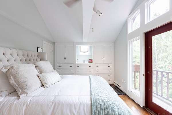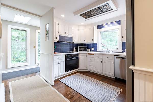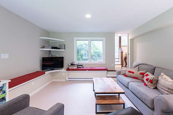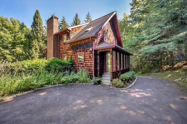 Nestled out of sight with complete privacy is this West Cornwall home with a traditional wood exterior but with a light filled modern interior! Located off of a lovely long paved approach this home seamlessly blends it's sophisticated design with its stunning professional landscaped setting. With 3 levels of living space 4 bedrooms, 3 full and 1 half baths, this home encourages entertaining but also offers a peaceful time out in the beautifully yard with a heated Gunite pool, pool house and a fire pit. The welcoming living room is anchored by a fireplace perfect for cozy evenings. There is a formal dining room for memorable gatherings while the comfortable lower level family room provides space for just kicking back and has a glass door to the level, sunny, pretty yard making it easy for lots of room to play. There also is plenty of room in the house to spread out-including several areas to work remotely. Enjoy the primary bedroom suite with its own private balcony as well as a vaulted ceiling and soft morning light. Below is a deck for dining on the main level of the house off the living room. A one car garage completes the offering. This is a wonderful place to recharge from life's daily grind! It is quiet and private but just minutes to the charming New England Village of West Cornwall, Cream Hill Lake, many hiking trails, downhill skiing at Mohawk Mountain, farmer's markets and the location is central to all that Litchfield County has to offer.