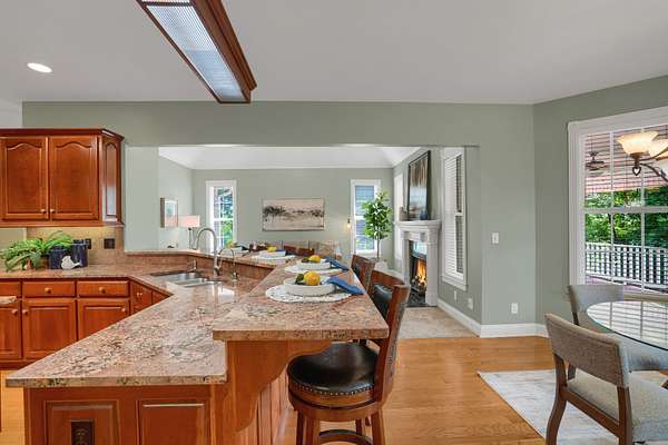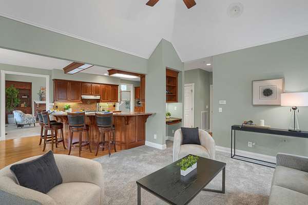 The open-concept kitchen offers custom cabinets, a brand-new gas stove, and a new microwave -- making it a dream for those who love to cook or entertain.