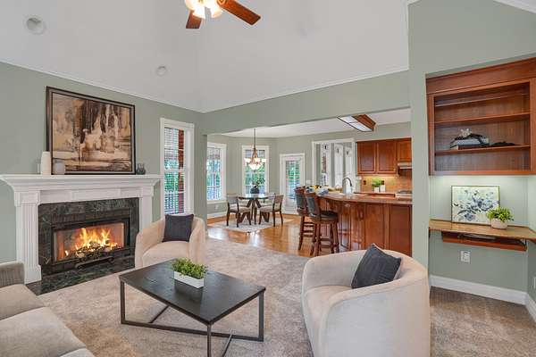 - Family Room, Gas, Living Room, Recreation Room, Wood Burning