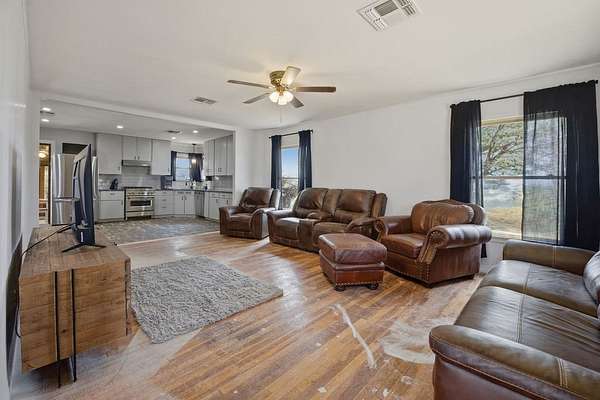 Est $2,543/moSecluded & private 3 bed, 2 bath home on 163 acres in a prime location! Over 1800 sq ft with a fully renovated kitchen featuring granite countertops and a gorgeous gas stove. The primary suite is completely updated with on suite bathroom. There options with flooring! Hardwoods could be finished out or the seller has vinyl flooring for the entire home ready to install! Generac generator already installed on the home. Outside offers new fencing, covered cattle pens, storage buildings, & excellent water-perfect country living!
