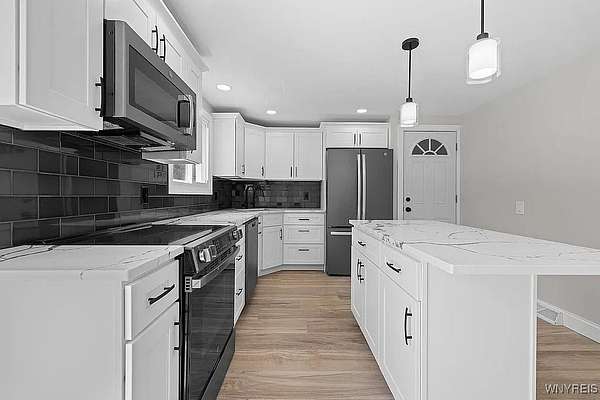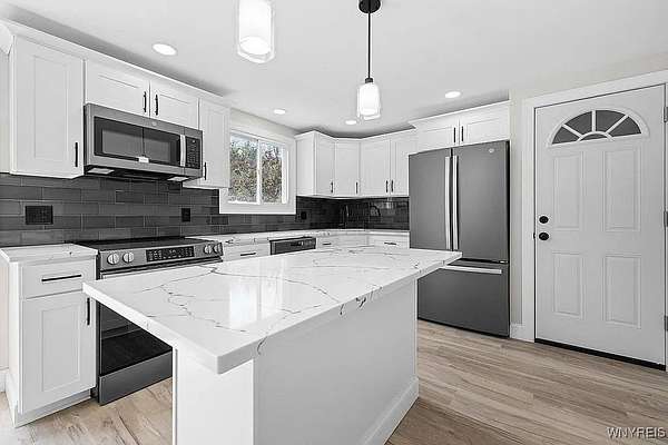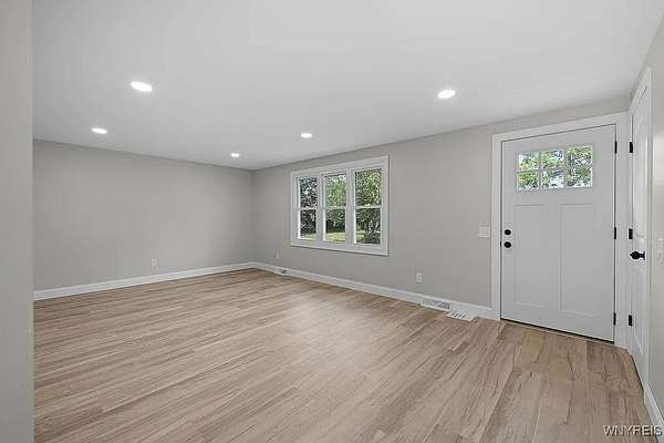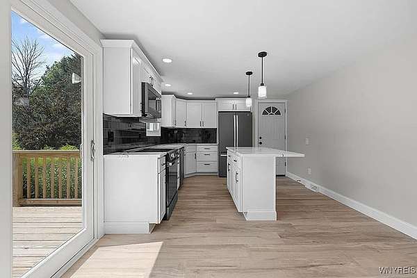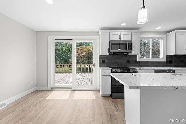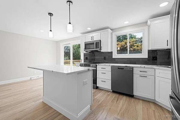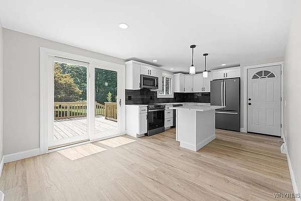 Welcome to 2330 Stedman Road, a beautifully remodeled home set on 2.18 scenic acres in Attica, NY. This 3-bedroom, 1-bath property has been thoughtfully updated from top to bottom in 2025, offering the perfect blend of modern finishes and country charm. Step inside to find an inviting eat-in kitchen featuring all new appliances, quartz countertops, and new cabinetry. Sliding doors lead to a spacious back deck, ideal for entertaining or enjoying peaceful views of the property. The home boasts all new flooring throughout, recessed lighting, and updated trim, doors, and moldings. Each of the three bedrooms includes its own closet, providing comfort and functionality. The bathroom is a true highlight with a tile shower/tub, double-sink vanity, and tile flooring. Additional updates include a brand-new central air system, a complete water filtration system, and a freshly paved asphalt driveway - all installed in 2025. A full basement provides excellent storage and the potential to be finished into additional living space. With its modern upgrades, functional layout, and expansive lot, this home is truly move-in ready. Don't miss your chance to own this stunning property in a desirable location!