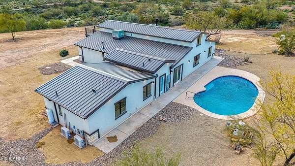This energy efficient 4 bedroom, 3.5 bathroom, 4 car garage, 3,120 sq ft custom home sits on nearly 5 LEVEL acres with Horse privileges and detached 900 Sq ft steel workshop/garage. Beautiful 2025 Full Renovation from the ground up situated privately at the rear of the property. All New upgrades include: Chef's Kitchen with built-in high end appliances, all tile main level, new plumbing throughout, all new electrical, full OSB exterior, synthetic stucco, spray foam insulation, Steel Roof, HVAC and ducting, Windows and Doors, and a new walkout deck with stunning views of Vulture Peak!