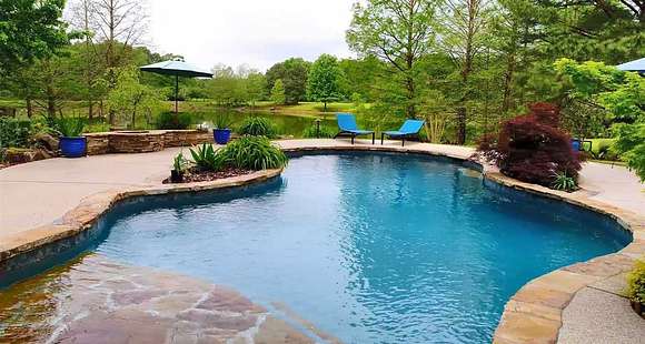 Est $7,126/moApproximately 24 acres for sale. The owner developed this property with an unbelievable home site that already features an incredible custom gunite pool and massive water fall flowing around the pool into the lake. The property has been meticulously maintained and is a nature lovers dream with flower beds spread over the property. The home site has underground power, city water and city gas and a new well for the pond.