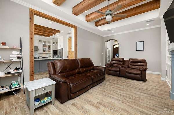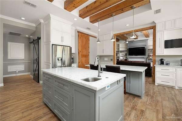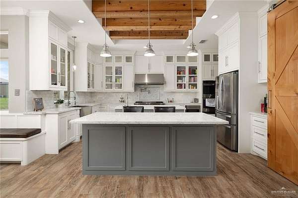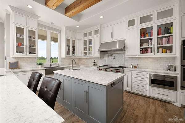 Welcome to this stunning farmhouse-style home on 2.5 acres on the outskirts of town, where peaceful, quiet living takes center stage. Enjoy the perfect balance of privacy and convenience, just a short drive from nearby amenities. Located in a gated community with its own private motorized gated entrance, plus a camera system for added security. The chef-inspired kitchen features a brand new commercial-grade gas stove, double ovens, spacious walk-in pantry, and custom built-in cabinetry with functional storage. Additional highlights include an oversized garage, versatile bonus room for gym or office, and ample storage throughout. The primary suite offers dual private commodes, spa-like bath, and showroom-style walk-in closet. Enjoy a Texas room and expansive outdoor space perfect for entertaining or relaxing. Upgrades include tankless water heater and water softener.