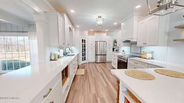 2331 Eastwood Drive | Trimble, TN Completely transformed and move-in ready, this stunning 1900-built home offers 2,743 heated square feet with 3 bedrooms and 2.5 baths-blending timeless character with modern luxury. Listed below appraisal. Step through the foyer with a NEW 8-foot door into spacious living areas featuring 10-foot ceilings, a family room with fireplace, formal dining room, sunroom, and a gourmet kitchen remodeled in 2023 with soft-close cabinetry, built-ins, drawer inserts, pantry, coffee bar, quartz countertops, and two bar areas. The primary bedroom boasts four closets, while all bathrooms feature NEW 2023 fixtures and cabinets. Enjoy a large utility room with sink, walk-in closets, and garage/storage room with walk-up attic access. Major upgrades in 2023 include: floor joists, subfloor, sheetrock, plumbing, electric, roof, windows, doors, HVAC & ductwork, flooring, light fixtures, and water heater. Crawl space is encapsulated with a commercial dehumidifier. Outside, you'll find a covered grill area, 10x16 shed, chicken coop, dog pen, ramp access, and a detached 24x30 shop with double insulation, electric, automatic door, and 2-car shop w/apron. Additional features: West Kentucky-Tennessee Internet, well water, septic, total electric. Fully furnished-includes appliances, furniture, window treatments, and most decor (itemized list available).