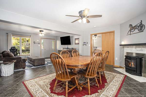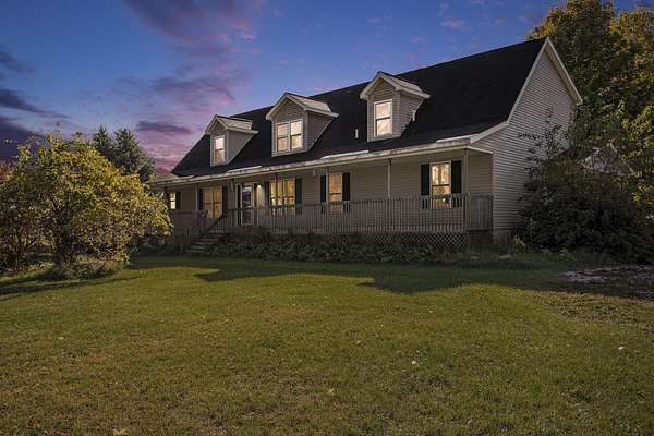 Welcome to this impressive residence offering nearly 5,000 square feet of finished living space, set on 2.5 peaceful acres and surrounded by open farmland with no nearby neighbors. Enjoy the privacy and serenity of country living while remaining just minutes from town. A large covered porch on both the front and back of the home provides the perfect place to relax and take in the tranquil views. Inside, the expansive layout features generous living areas, multiple flex spaces ideal for offices, guest suites, recreation, or hobby rooms, and abundant storage throughout. The home easily accommodates multi-generational living, work-from-home needs, or retreat-style living. Two metal pole barns/garages offer exceptional space for vehicles, equipment, or a workshop. This property delivers space, freedom, and functionality in a truly peaceful setting.