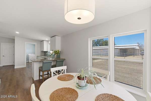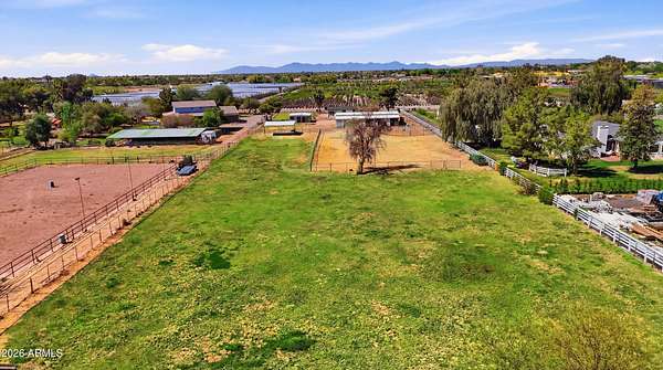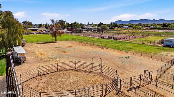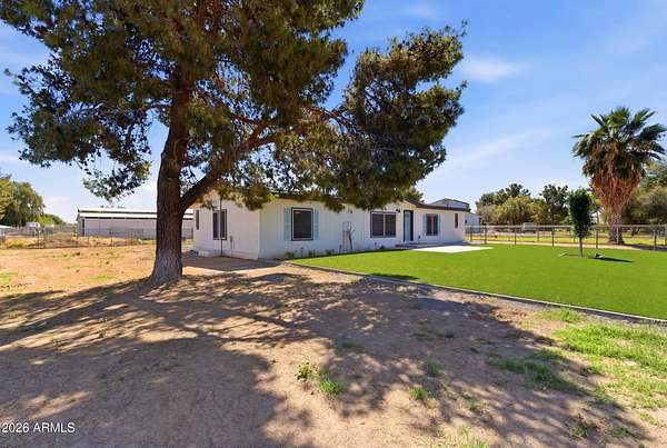 ''LAND!! HORSE PROPERTY! ''Buy land, they're not making it anymore.'' - Mark Twain. Welcome to a rare opportunity to own almost 2.5 acres of IRRIGATED HORSE PROPERTY that perfectly blends country living with city conveniences. This beautiful property features a horse barn with 7 stalls, a dedicated tack room, and plenty of space to ride, roam, and enjoy the Arizona lifestyle. Inside this updated manufactured home, you'll find 2.5 fully remodeled bathrooms, fresh interior paint and an updated feel throughout. Step outside and take in breathtaking Arizona sunsets from your own private slice of LAND - something that simply can't be replicated! Whether you are an equestrian enthusiast or just craving space and serenity, this property delivers the BEST of both worlds!' 3rd bedroom is currently a den/alcove that could be made into a 3rd bedroom.