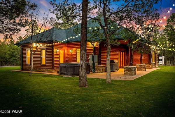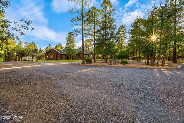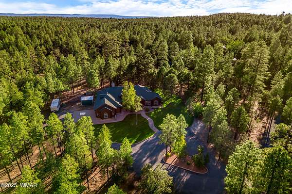 A rare and exceptional opportunity to own over 5 pristine acres in the heart of Lakeside, AZ. This fully fenced, multi-access estate with a private gated entry offers unmatched privacy, versatility, and true pride of ownership, without the constraints of an HOA. The stunning 5-bedroom, 3-bath custom home spans 3,217 square feet of thoughtfully designed living space, surrounded by towering pines, lush landscaping, and refined mountain charm. Inside, a grand foyer welcomes you into an open-concept living and dining area, anchored by a chef's kitchen featuring granite countertops, stainless steel appliances, natural wood cabinetry, and an oversized island ideal for gathering. A dedicated home office and spacious laundry room enhance everyday functionality. The primary suite is a private retreat, complete with a jetted soaking tub, walk-in tile shower, dual vanities, and generous his-and-hers closets. A secondary ensuite provides comfort and privacy for guests, while additional bedrooms are well-appointed with easy access to a full guest bath and outdoor living spaces. Designed for both lifestyle and utility, the property is fully equipped for equestrian use and self-sufficiency. Enjoy horse privileges with corrals, water troughs, and a tack/feed room. A detached 4-car garage/shop, extended attached 2-car garage, and additional RV parking, including a detached RV garage, offer ample space for vehicles, equipment, and toys. Multiple entry points make access seamless for large trailers or gatherings. Outdoor living shines with over 12,000 square feet of manicured lawn, a greenhouse, raised garden beds, and a private hot tub perfect for enjoying cool mountain evenings under the stars. This property has hosted weddings and gatherings, offering endless potential to create lasting memories. Infrastructure is equally impressive, featuring a private well tapping the Coconino Aquifer with a 10,000-gallon storage tank, plus connection to Arizona Water Company for added reliability. A backup generator powered by two owned 500-gallon propane tanks ensures peace of mind year-round. Additional features include solar-powered entry gates, automatic sprinklers, and extensive recent upgrades including new roofs, windows, lighting, and interior/exterior finishes. For those seeking a fully equipped estate, the property includes a wide array of maintenance and recreational equipment, making it truly turnkey for country living. Ideally located just minutes from lakes, trails, shopping, dining, and year-round recreation; -including nearby ski resorts! This one-of-a-kind property offers the perfect blend of luxury, privacy, and outdoor lifestyle. Includes parcels 212-19-021F and 212-19-021E totaling 5 acres. See Features & Upgrades List in Documents for full details. *** Discover the White Mountains of Arizona, where adventure, beauty, and fresh mountain air come together. Enjoy four stunning seasons, 40 lakes, and 600+ miles of rivers and streams, perfect for fishing, kayaking, and exploring. Hit the trails on one of the largest trail systems in the Southwest, or spend winter days at Sunrise Ski Resort, just 40 minutes away with three mountains of skiing, snowboarding, and sledding. Love shopping or culture; wander through antique shops, summer arts & craft fairs, and lively music festivals. Golfers can tee off at seven scenic courses, including three public gems. It's no wonder Pinetop-Lakeside was voted the "Best Cabin Region in the U.S." The White Mountains, Arizona's best-kept secret. Come explore and embrace the MAGIC!