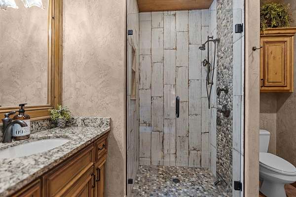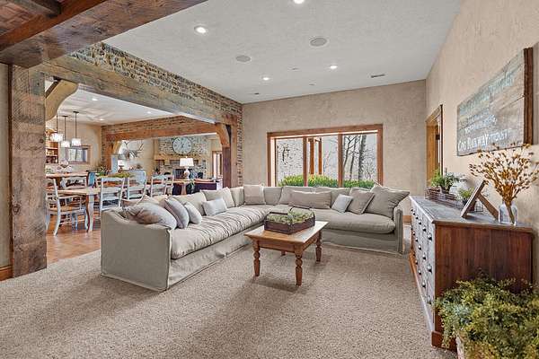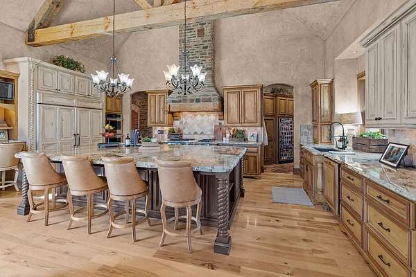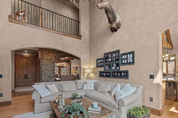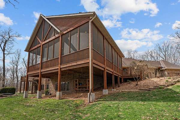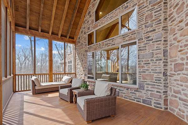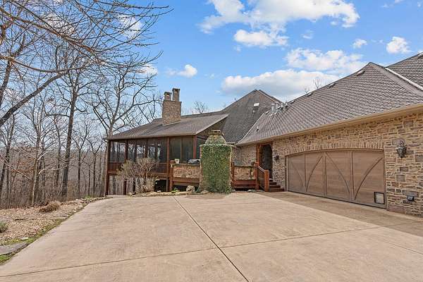 Set on an expansive 30 acres of rolling, private land, this stunning 8,000 sq ft estate is the definition of luxury living in the Ozarks. A long, winding drive leads you to a timeless brick and stone facade, where warm architectural details and a welcoming front entry immediately set the tone for what's inside.Designed for both everyday comfort and elevated entertaining, the home offers generous living spaces, soaring ceilings, and thoughtfully placed windows that fill the home with natural light. Every inch feels intentional--blending elegance with livability.At the heart of the home is a true dream chef's kitchen. Outfitted with high-end appliances, double ovens, expansive granite countertops, custom cabinetry, and multiple prep areas, this space is built for both serious cooking and gathering. Whether hosting large-scale events or intimate family dinners, the kitchen flows seamlessly into open living and dining spaces, creating a natural hub for connection.Step into the massive screened-in porch just off the kitchen, and right outside you'll find a built-in pizza oven--perfect for effortless entertaining and unforgettable gatherings. Whether it's casual nights with family or hosting a crowd, this outdoor space extends the home's living area in the best way.The acreage offers endless possibilities--privacy, recreation, or simply enjoying wide-open space--while still delivering the sophistication of a luxury estate. This is more than a home; it's a retreat designed for those who want space, beauty, and functionality all in one.