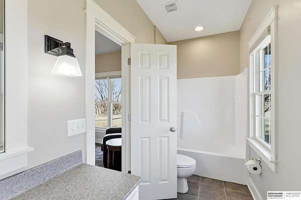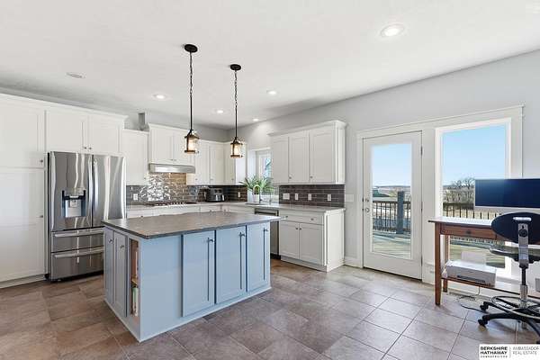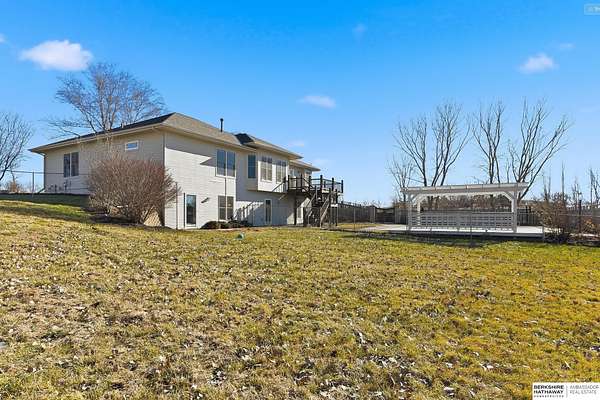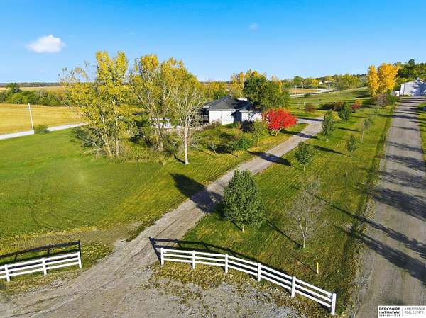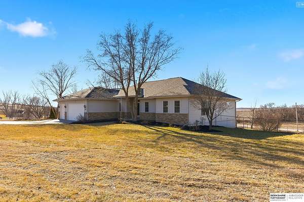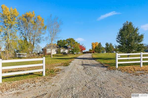Lori Paul, M: 402-681-9371, loripaulrealtor@gmail.com, https://www.bhhsamb.com/lori.paul - Nestled on 4.25 scenic acres in Gretna, this beautifully updated ranch offers privacy, space, and unforgettable views and open sky. The heart of the home features a stunning kitchen with a large center island, quality finishes, and an open layout to the living room, where a wall of windows brings the outdoors in. The primary suite is a true retreat with a recently remodeled spa bath and heated floors, while a second main-floor bedroom offers its own en-suite bath. The walkout lower level includes a spacious rec room, third bedroom, flex room, and generous storage. Step outside to enjoy the saltwater pool, thoughtfully fenced separately from the yard, ideal for both entertaining and everyday living. A standout outbuilding with concrete radiant-heated floors provides endless possibilities for hobbies, storage, or workspace. This exceptional property offers timeless comfort, functionality, and room