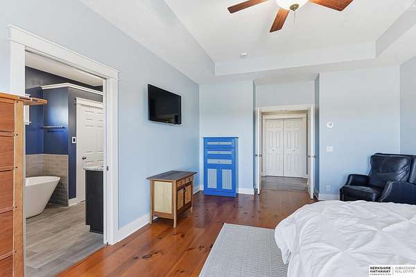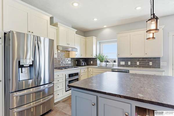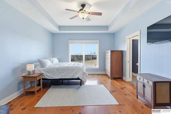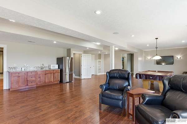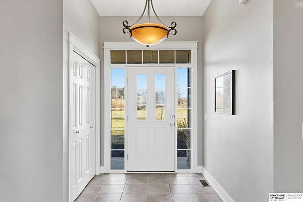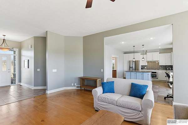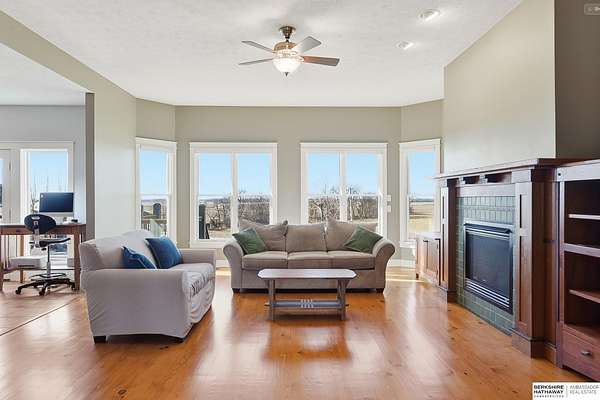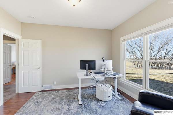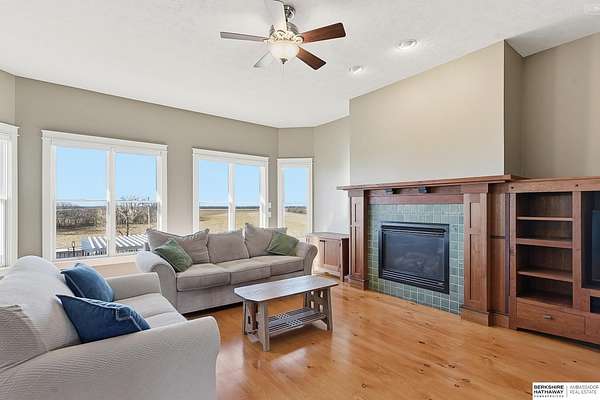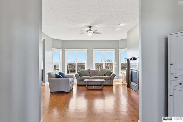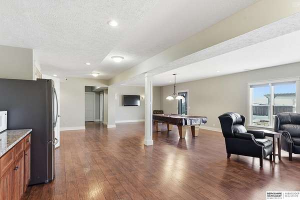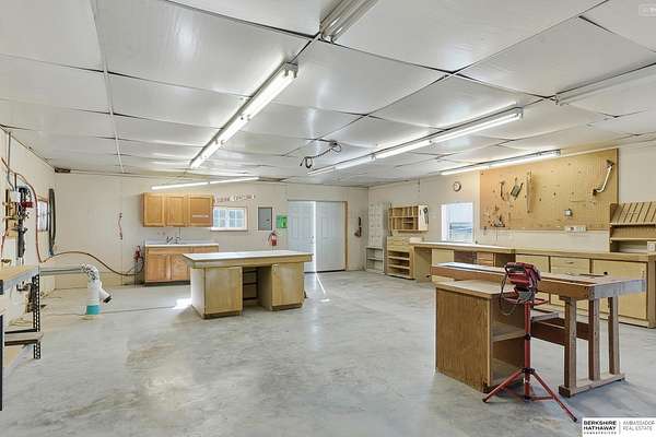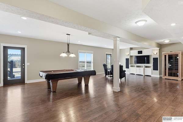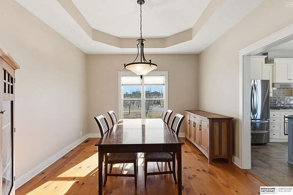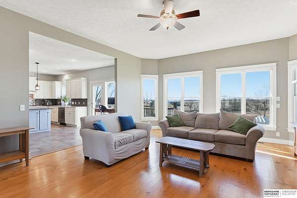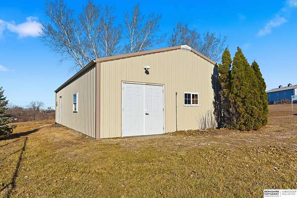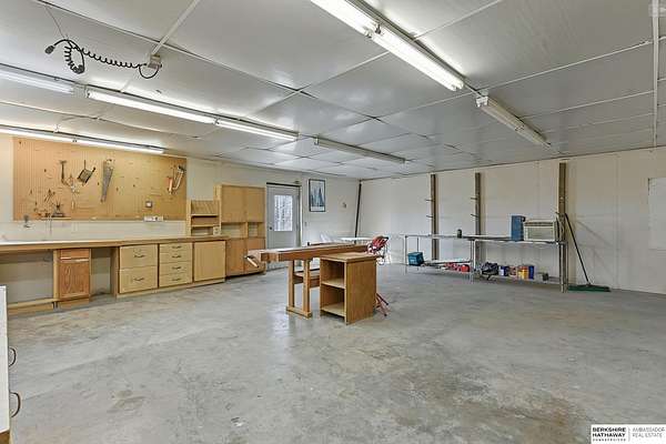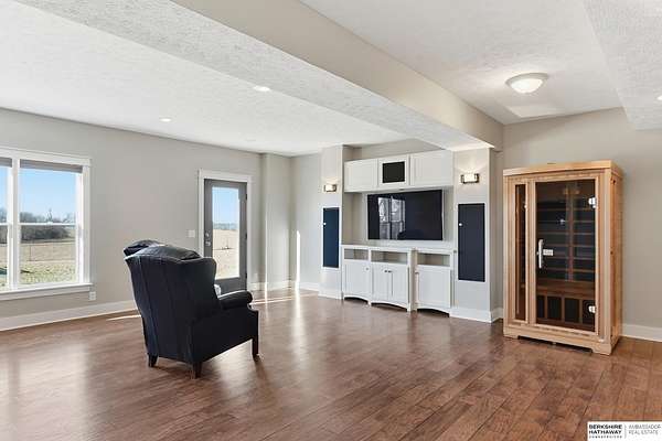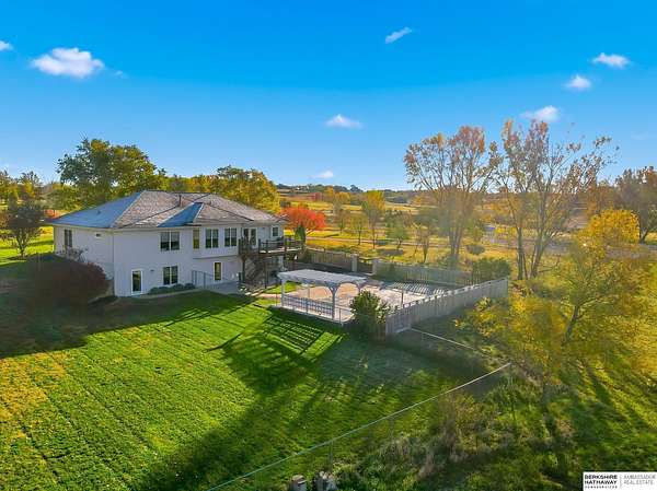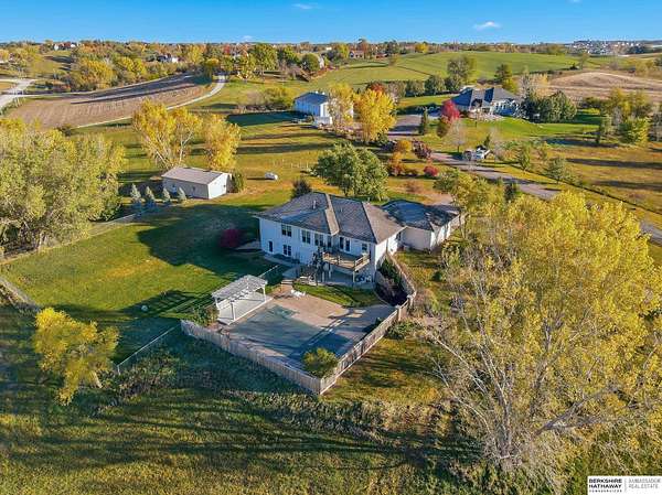Lori Paul, M: 402-681-9371, loripaulrealtor@gmail.com, https://www.bhhsamb.com/lori.paul - Nestled on 4.25 scenic acres in Gretna, this beautifully updated ranch home with saltwater pool, offers privacy, space, unforgettable views and open sky. The heart of the home features a stunning kitchen with a large center island, quality finishes, an open layout to the great room and the wall of windows brings the outdoors in. The primary suite is a true retreat with a recently remodeled spa bath, heated floors, walk in shower, bathtub and large closet. The second main-floor bedroom offers its own en-suite bath plus large walk-in closet. The walkout lower level includes a spacious rec room, third bedroom, flex room, and generous storage. Step outside to enjoy the saltwater pool, thoughtfully fenced separately from the yard, ideal for both entertaining and everyday living. An OUTBUILDING with concrete radiant-heated floors provides endless possibilities for hobbies, storage, or workspace. This e