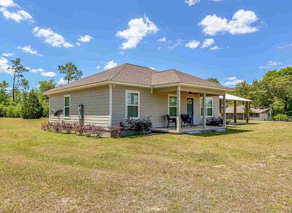 Welcome to country living at 23323 NW Blackbottom Road in Altha, Florida. Built in 2024, this beautifully designed 3-bedroom, 2-bath home sits on 2.71 acres and offers the space, comfort, and modern finishes buyers are looking for. Step inside and you'll notice the bright, open layout filled with natural light. The spacious living room features tray ceilings, recessed lighting, and a sleek electric fireplace that creates a warm and inviting space to relax or gather with family and friends. The kitchen is both stylish and functional, with white cabinetry, granite countertops, stainless steel appliances, and plenty of storage for everyday living and entertaining. The primary suite offers a comfortable retreat with a private ensuite bath, creating the perfect place to unwind at the end of the day. The additional bedrooms provide flexibility for guests, hobbies, or a home office. Outside, the property gives you room to spread out and enjoy the outdoors. Start your mornings on the covered front porch and wind down in the evenings on the large covered back patio with wood plank ceilings and wide-open views of your acreage. The detached carport adds convenient covered parking, while the pole barn and enclosed shed provide extra space for storage, equipment, hobbies, or weekend projects. Located about an hour from Panama City, Mexico Beach, and Dothan, Alabama, this home offers a great balance of country living with convenient access to the coast, shopping, dining, and nearby towns. With room to enjoy the land, space for your toys and tools, and the benefits of a newer home with modern finishes, this property offers the best of country living. Schedule your private showing soon and come see all that 23323 NW Blackbottom Road has to offer.