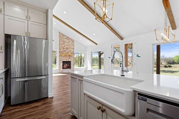 Set on nearly 11 scenic acres, this newly constructed modern farmhouse blends peaceful country living with fresh, elevated design. Surrounded by mature trees and open pastureland, the property features a picturesque pond stocked with bass and brim, wide-open skies, and unlimited possibilities. This is what East Texas dreams are made of. In addition to the beautiful new modern farmhouse that has never been lived in, the property features a large shop with heated and cooled furnished apartment. Several other building sites, storage buildings and a loafing shed. Bee-keeping equipment can also convey as well as 2 adorable donkeys. There is a tenant in an additional small cabin on one corner of the property.