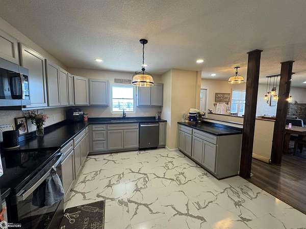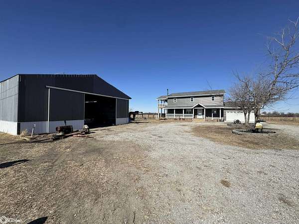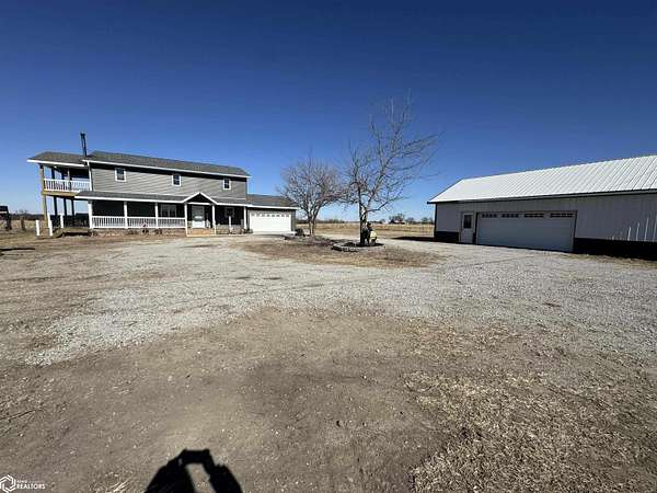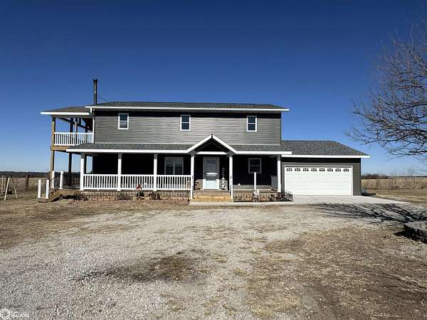 Newer 2-story home offering approximately 2,400 sq. ft. of well-designed living space on 11.65 acres m/l. This 5-bedroom, 2-bathroom home features an open layout filled with natural light, creating a bright and welcoming atmosphere throughout the main living areas. The spacious design provides flexibility for families, guests, or home office needs. In addition to the attached garage, the property includes a detached garage and an outbuilding-ideal for storage, workshop space, equipment, or hobby use. Set up perfectly for a small hobby farm, the 11.65 acres offer open space for livestock, gardening, or recreational use. A small pond adds to the peaceful setting and country charm. Enjoy the privacy, space, and versatility this property has to offer while still having the convenience of a newer-built home.