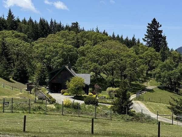 Exceptional Ranch Property in Northern California Discover an unparalleled ranching opportunity in Humboldt County, showcasing natural beauty, seclusion, and superior craftsmanship. This expansive 600+ acre property offers a unique blend of rolling hills, level pastures, meadows, and forestland, with numerous ponds and streams throughout. 185 acres of fully fenced pastures are well-maintained and ready for use. Property features a custom home, artist's studio, greenhouse, and 2 off-grid barns, exemplifying exceptional craftsmanship. State-of-the-art livestock facilities include a 6-stall horse barn, drive-in hay lofts, and hot water available. The adjoining 400+ acres boast three old-growth redwood barns, including an equipment storage barn with covered fueling facility, an equipment maintenance and woodworking barn, and a small open horse barn. The property also features ample water storage and a large pond. Newer solar system and generator with battery backup. One of the most striking aspects of this property is its breathtaking views of the mountains above the fog belt, the wildlife, the Mad River watershed, and the distant Pacific Ocean. Property was used for a large licensed grow and owners took every precaution possible to ensure the beauty of the buildings and landscape held to their original design. In terms of location and accessibility, the property is situated a little over an hour's drive from the Eureka/Arcata airport and approximately 8 miles from a public school. It is accessible via a county-maintained road. This exceptional ranch property offers a rare opportunity to own a piece of Northern California's natural beauty, with potential for ranching, farming, or simply enjoying the serenity of the great outdoors.