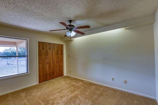 The J Vann Jones Ranch on scenic Vann Road (CR 105) is centrally located in one of the most desirable areas in the hill country surrounded by larger ranches at the northern most portion of Burnet County between Lampasas (15 minutes) and Burnet (30 minutes). It is still operating as a cattle ranch today. It's a great square shaped property that is well treed with Live Oak, Post Oak, Elm, Mesquite and Cedar. Some of the cedar has been cleared, but there is plenty left to provide for more than adequate cover for the abundant wildlife which includes quality whitetail deer, turkey, occasional exotic, dove, hog just to name a few. The ranch has had very little hunting pressure over the last few years. It is fully fenced, with 2 sides being high fenced. Lending it to be an easy convert into a fully high fenced game ranch. There are concrete water troughs and a very practical set of cattle pens and loading chute. There are also a couple of stock tanks/ponds for additional watering sources. The 2,074sqft Main House is Brick 4 Bed/2 Bath with a great wood burning fireplace and a new HVAC system installed August 2022. Bunkhouse is 640sqft 2 Bed/1 Bath. Both have fresh paint inside and out. Room for your vehicles, tractors or ATVs in the big barn with concrete floor or under the carport. Laundry room attached to carport with extra 1/2 bath. A chain link fence surrounds the Houses to keep livestock out and pets in the yard. Bring your horses, cattle or ATVs and turn this into your own legacy/hunting ranch retreat.