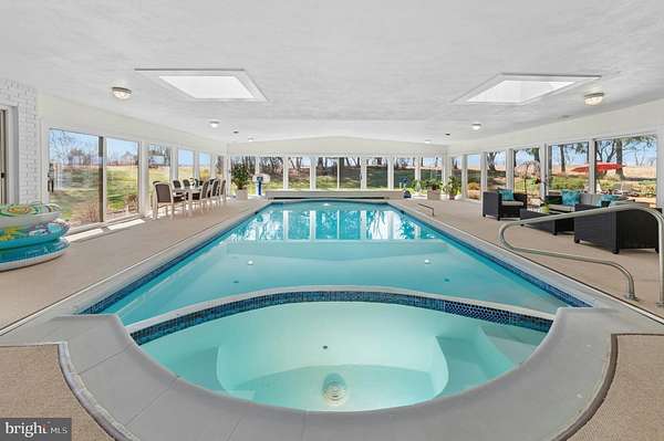 THE OASIS A private cul-de-sac is the setting for this extraordinary home offering single-floor living in the heart of the Lehigh Valley. The ultra-convenient location stands minutes from Cedar Crest Boulevard, Lehigh Country Club, Lehigh Valley Hospital and I-78. This remarkable contemporary residence was built in 1975 and sits on over 3 acres of mature landscaping and lush gardens. Open and airy living spaces are filled with natural light and designed for both comfortable living and elegant entertaining. Formal living and dining rooms are found in the front of the house, with a large family room and well appointed chef's kitchen nearby. A sunny breakfast room, office/flex room, laundry room, and full bath complete this wing of the home. The primary suite is luxurious with plush carpet, a raised platform bed, and separate sitting areas. Dual baths and closets make this space both unique and practical. Also in this wing is a separate suite, and two hall bedrooms with built-in beds as well as an updated full bath. The piece de resistance is of course the indoor pool, a private retreat in the center of this incredible home. With walls of windows on all sides, the heated inground bromine pool has a retractable cover, vaulted ceiling with skylights, and access to both the interior of the house as well as the grounds beyond.