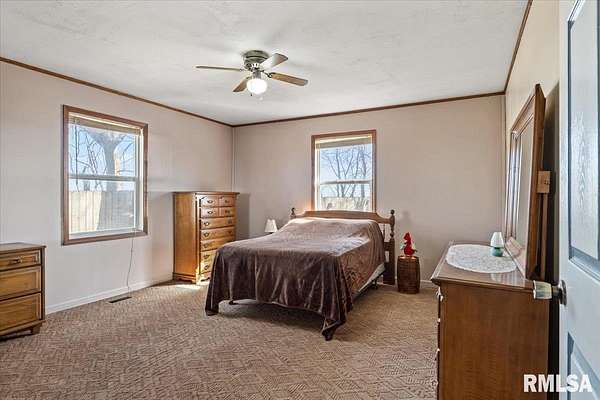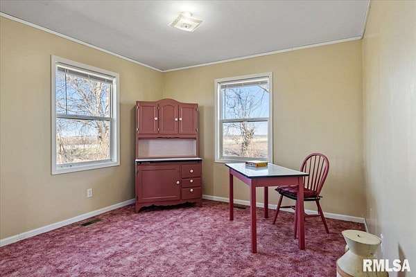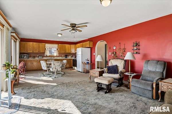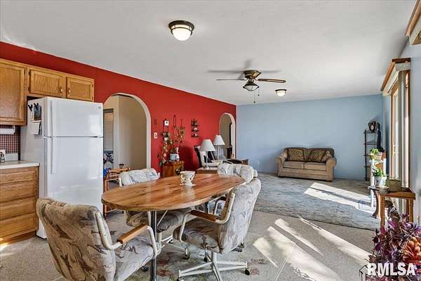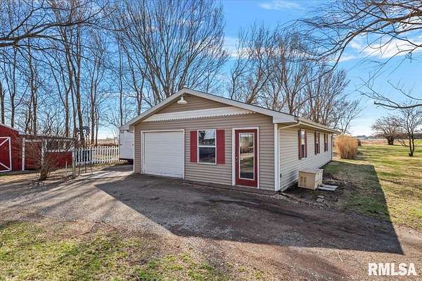 Sitting on 2.1 acres across 2 parcels, this rural homestead offers space, charm & endless potential in a prime location between Greenview & Springfield. Find a delightful 3BR ranch with over 1,400 sq ft of living space in an overly practical layout that's been clearly cared for with pride. A spacious living room welcomes you inside where charming arched doorways create character and flow seamlessly into the eat-in kitchen. Dual sliding doors step out to the deck, extending everyday living & entertaining space outdoors while overlooking gorgeous countryside views. 3 generous bedrooms are served by a full bathroom offering a lovely built-in vanity area. Major mechanical upgrades include a furnace new in 2024, A/C replaced in 2022, plus the added comfort of a water softener & whole-home generator leave room for you to show off your own style in any cosmetic improvements deemed necessary. Outside, the rest of this property shines behind a cute circle drive and attractive rural setting complemented by multiple outbuildings. This includes a huge barn (sold as-is), storage shed & an impressive 1,200 sq ft propane-heated garage that offers a fantastic recr area with potential use for hobbies, workshop space or storage. With scenic surroundings in every direction and plenty of room to grow, this Menard County property delivers country living with sound mechanicals & the convenience of close proximity to nearby communities.