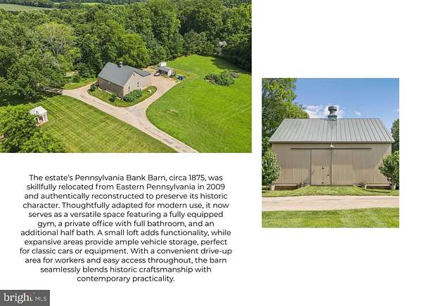 ROSE HILL ESTATE-350 ACRES OF HISTORIC ELEGANCE AND ELEVATED COUNTRY LIFESTYLE. One of Virginia's most distinguished country estates, this extraordinary 352-acre property offers timeless elegance, masterful restoration, and unparalleled privacy. Designed for those who seek both heritage and luxury, every detail of this estate reflects refined craftsmanship and enduring beauty. Set amid 352.24 acres of pristine Virginia countryside under conservation easement ensuring enduring privacy, this extraordinary estate blends centuries-old heritage with elegant lifestyle, the highest level of modern restoration and design. Accessed through two gated entrances, the property unfolds across rolling fields, century old grand hardwoods (perfect for swinging), formal gardens, and a stocked pond, offering an unmatched combination of seclusion, grandeur, and comfort. Originally built in 1799, the residence underwent complete restoration in 2011 by Tidewater Preservation, Inc., guided by acclaimed Charleston interior designer Amelia T. Handegan as seen in Architectural Digest. The result is an estate that honors its historic character while incorporating highest refined elegance and advanced systems, including geothermal climate control and radiant floor heating. The 5,431 sq ft main house features 4 bedrooms, each with an ensuite bath, and gracious living spaces adorned with hardwood floors, intricate crown molding, chair railing, and custom French wallpaper. Formal entertaining rooms include a dining room with fireplace, living room with built-ins, and a distinctive octagonal music room with English windows and hand-painted geometric floors. The chefs eat-in kitchen pairs historic beauty with professional-grade amenities: wood cabinetry, stunning wood burning fireplace, marble-topped island, Wolf range, paneled appliances, wine refrigerator, and ice machine. A beautiful mudroom with built-ins and front-loading washer/dryer with access to the gorgeous garden complements the space. The stunning main level primary suite boasts front porch access, fireplace, sitting room with built-ins, walk-in closet, doors accessing the outdoors, and a marble-clad bathroom with dual sinks, soaking tub, and walk-in shower. The Additional suites provide fireplaces, built-ins, walk-in closet, and beautifully appointed baths. All with majestic views of either rolling hills and pond or stunning historic garden. Beyond the main house, a beautiful guest cottage with exposed beams, marble finishes, and fireplace offers a private retreat. A Pennsylvania bank barn (relocated in 2009) houses a gym, office with full bath, and loft. Distinctive architectural features include a Thomas Jefferson-designed dovecote with Birmingham Rollers and a new folly overlooking the stocked pond. Outdoor amenities include a tennis court with pavilion, croquet lawn, riding trails, formal gardens featured in and used for Garden Club tours highlighting the home and its Historic Garden filled with hydrangeas, peonies, fruit trees, rose of Sharon and much more. A working barn housing a herd of Belted Galloway cattle and a stocked pond with new folly complete the estate. Utilities: well water, septic, geothermal A/C, propane heat (two owned tanks: 500 & 1,000 gallons), radiant floor heating, and four hot water tanks. This estate is a rare offering-steeped in history, exquisitely restored, and a wonderful lifestyle with opportunity in nature and outdoor activities.