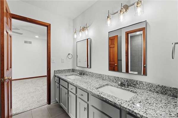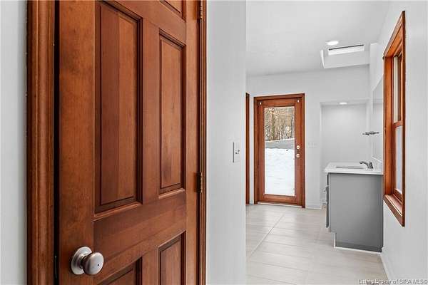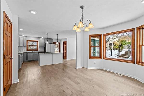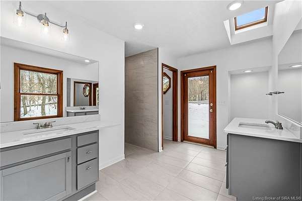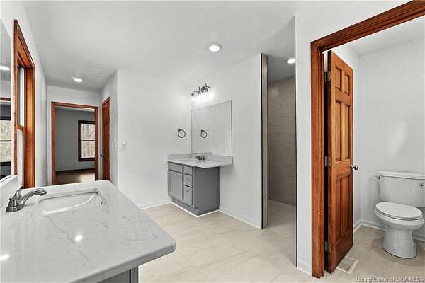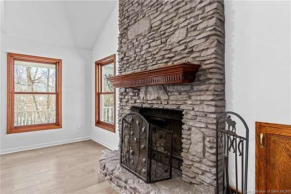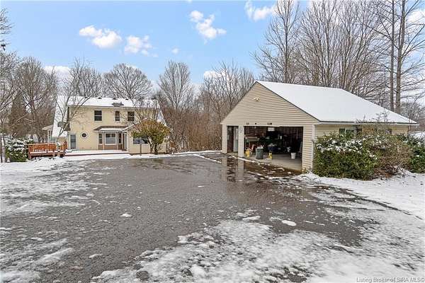 Welcome to this beautifully updated 3-bedroom, 4-bath home offering nearly 3,000 square feet of finished living space, situated on 4.475 partially wooded acres in the highly sought-after Floyd Central School District. This property delivers a rare blend of space, privacy, and modern upgrades. Inside, the home features new flooring throughout, fresh paint, and updated light fixtures, along with nicely renovated bathrooms. The primary bathroom includes a tile walk-in shower and dual vanities, while the remaining bathrooms have been tastefully updated with new vanities and finishes. The kitchen has been upgraded with new granite countertops, cabinetry, and appliances complementing the home's beautiful wood trim and inviting living spaces. A striking stone fireplace serves as a focal point on the main level. The first-floor primary suite offers convenience and comfort and features French doors that add architectural charm. The Walkout finished basement expands the living space with a recreational area, full bathroom, and decorative wood-burning stove, providing flexibility for entertaining, hobbies, or relaxation. Outdoor highlights include a wrap-around porch overlooking the partially wooded acreage, spot for a hot tub along with a detached 2-car garage and a barn for storage or additional uses. Move-in ready and full of character, this home offers space, updates, and an exceptional setting-just minutes from Highlander Point, Floyd Central schools and Southern Indiana amenities.