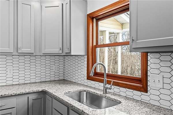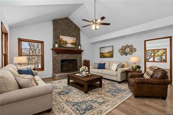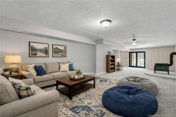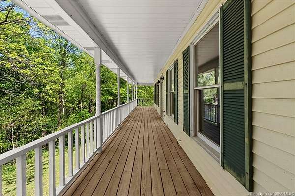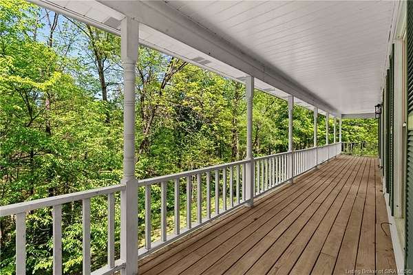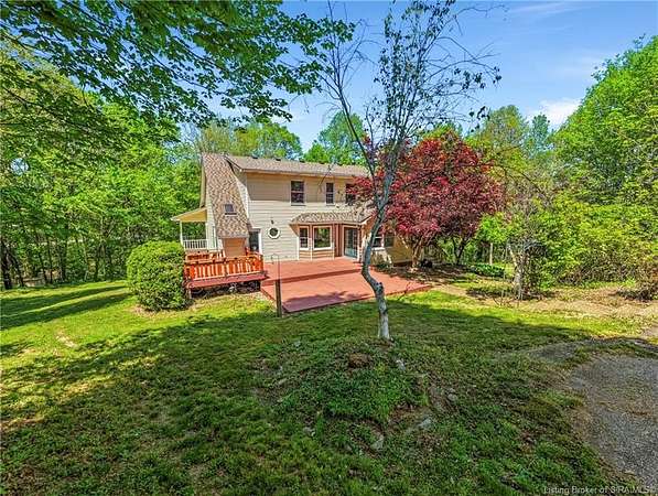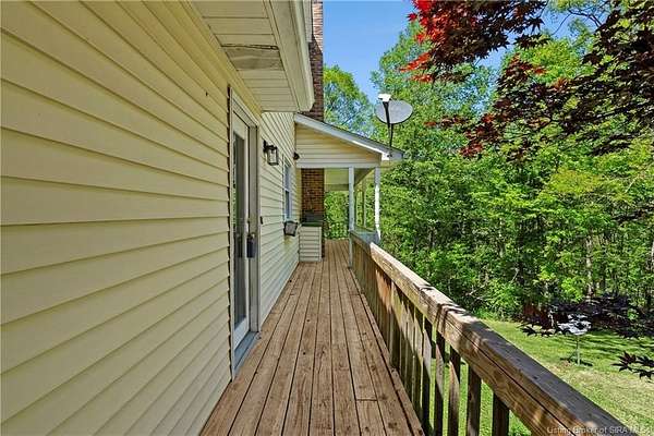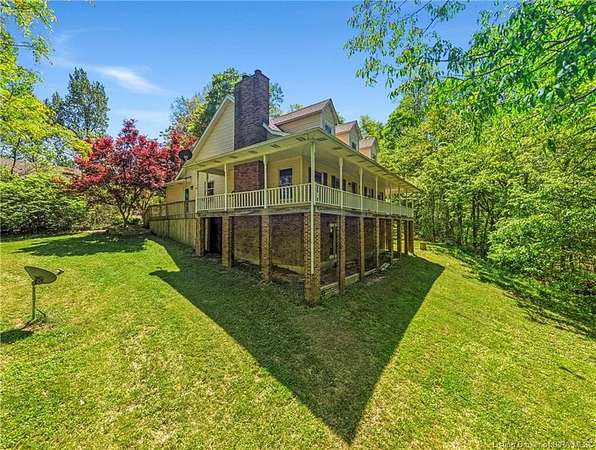 Welcome to this beautifully updated 3-bedroom, 4-bath home offering nearly 3,000 square feet of finished living space, situated on 4.475 partially wooded acres in the highly sought-after Floyd Central School District. This property delivers a rare blend of space, privacy, and modern upgrades. Inside, the home features new flooring throughout, fresh paint, and updated light fixtures, along with nicely renovated bathrooms. The primary bathroom includes a tile walk-in shower and dual vanities, while the remaining bathrooms have been tastefully updated with new vanities and finishes. The kitchen has been upgraded with new granite countertops, cabinetry, and appliances complementing the home's beautiful wood trim and inviting living spaces. A striking stone fireplace serves as a focal point on the main level. The first-floor primary suite offers convenience and comfort and features French doors that add architectural charm. The Walkout finished basement expands the living space with a recreational area, full bathroom, and decorative wood-burning stove, providing flexibility for entertaining, hobbies, or relaxation. Outdoor highlights include a wrap-around porch overlooking the partially wooded acreage, spot for a hot tub along with a detached 2-car garage and a barn for storage or additional uses. Move-in ready and full of character, this home offers space, updates, and an exceptional setting-just minutes from Highlander Point, Floyd Central schools and Southern Indiana amenities