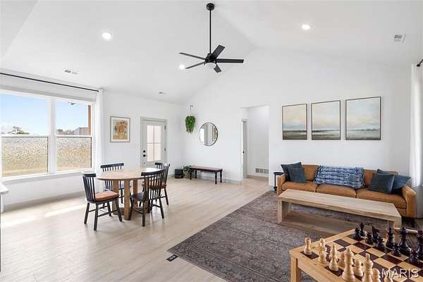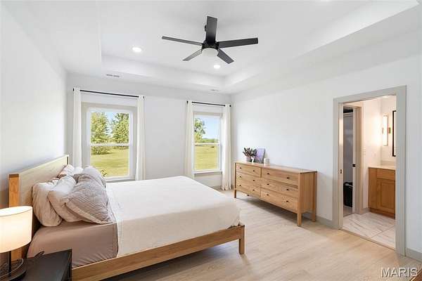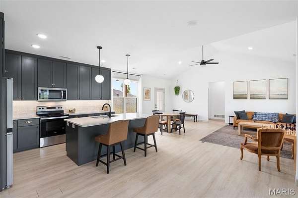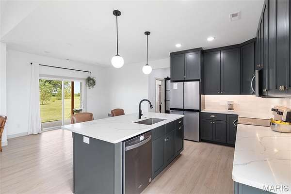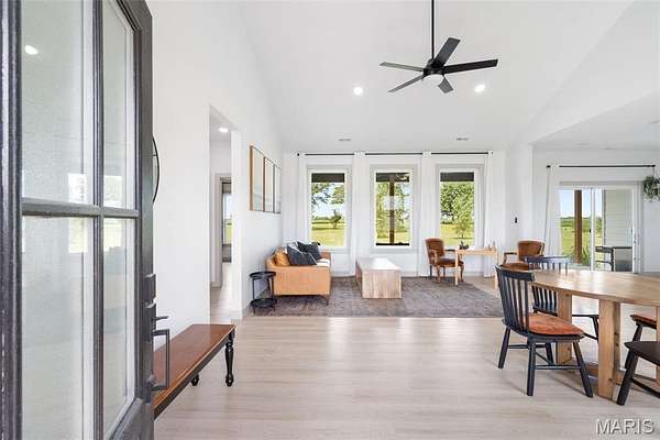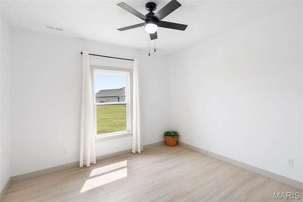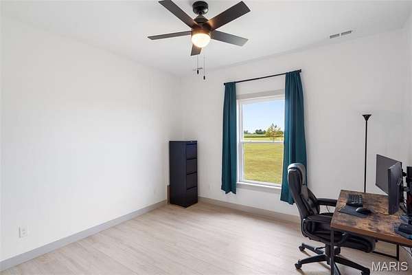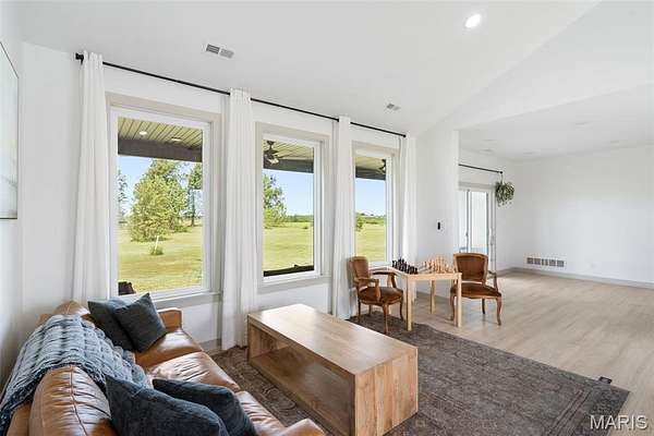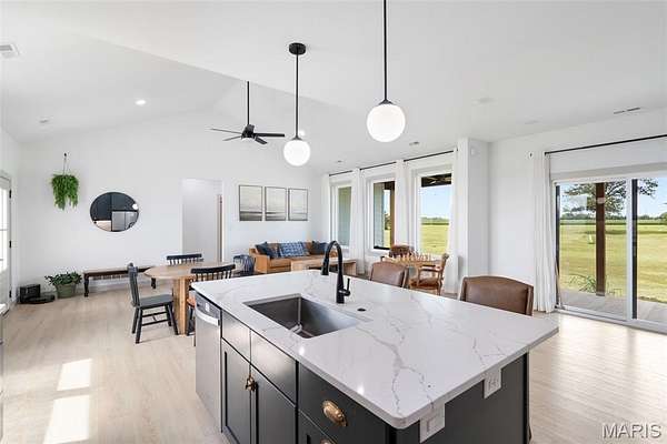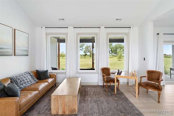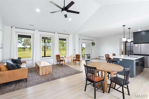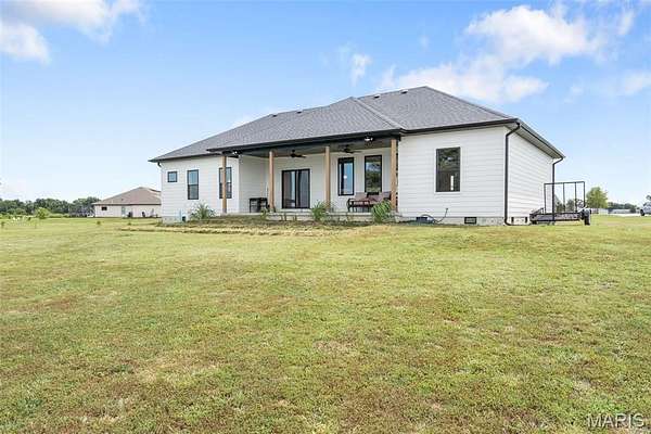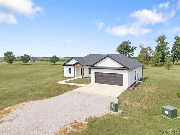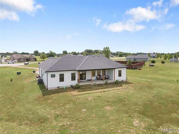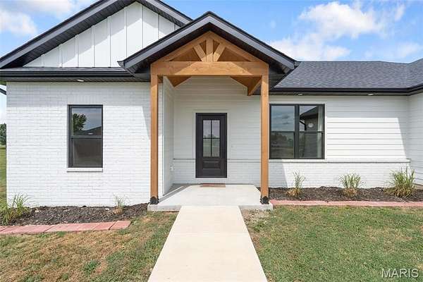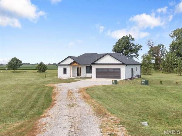 Experience the allure of 23365 N Lark Song Lane. A gorgeous home nestled in the heart of Sturgeon, MO, on 3.59 sprawling acres. Walk into this BEAUTIFULLY constructed 3 bedroom 2 full bath 2 car garage home, through the door into the spacious open floor plan with gorgeous natural LVP flooring, souring ceilings, beautifully clean white walls, wall of windows allowing the beautiful sunlight to come through, & a sliding glass door that leads you out to your covered back patio. Spend the mornings on your patio with a cup of coffee and a book or the evenings on the patio catching the sunset or BBQing. The kitchen is equipped with 42 inch beautiful soft close cabinets, stunning white quartz counter tops, large center island with plenty of space for seating, stainless steal appliances and walk in pantry. Retreat to the master en suite which is located on the opposite side of the home, being a peaceful sanctuary retreat all on its own! Large walk in closet & beautiful windows overlooking your back yard. Primary bathroom has spacious shower, & double vanity. Two additional spacious bedrooms are located on the opposite of the home, along with a full bath with shower/tub combo. Laundry room has a wash sink & plenty of space for cabinets to be added for additional storage. Out in the garage you will find plenty of space for all your tools and parking & they even have a dog washing station!!! Don't wait to book your appointment, & miss out on this beautiful home!