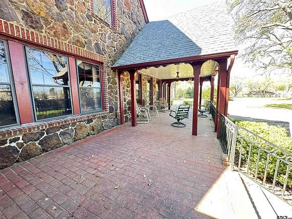 WELL cared for iron ore rock home offering 3B 2 1/2B home PLUS 2 rentals which could generate a huge portion of your payment. Home has beautiful hardwood flooring, updated kitchen and all bedrooms are large. This property is NOT IN the city limits-no city taxes. Has natural gas, city water, new aerobic system summer of '23, 2 new independent HVAC systems installed by Maddox January '24 (8 yr warranty left).Every wall & ceiling is tongue & groove pine. Living room fireplace is all hand carved from beautiful teak wood. 4 car garage & workshop room. Covered patios with brick floors, wooden deck. Lots of wrought iron fencing. One apartment offers living room, kitchen and bath with living area large enough for office/desk space, other apartment is basically an efficiency upstairs 1B1B. Property sits on 2.78 acres and has a creek and natural springs. Property backs up to King street for another entrance. Located ON HWY 79 - Great visibility for new business ideas or make it your gorgeous home. You will love the location either way. New roof, gutters and downspouts will also be replaced July/August 2025. Aerobic inspected monthly and A/C just had semi annual maintenance completed.