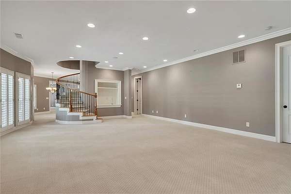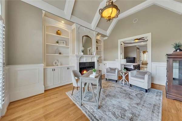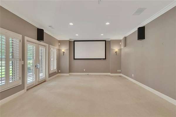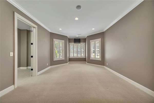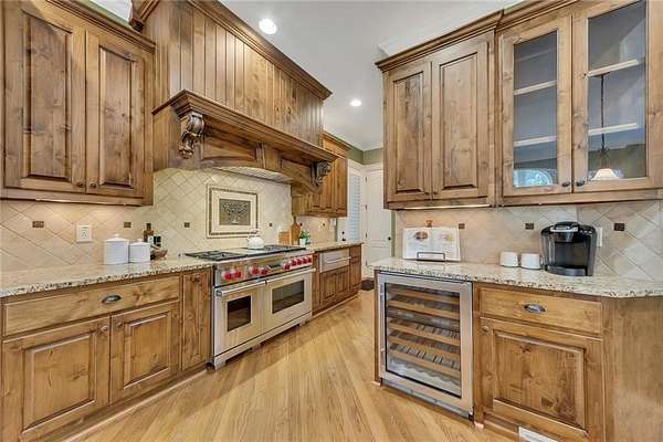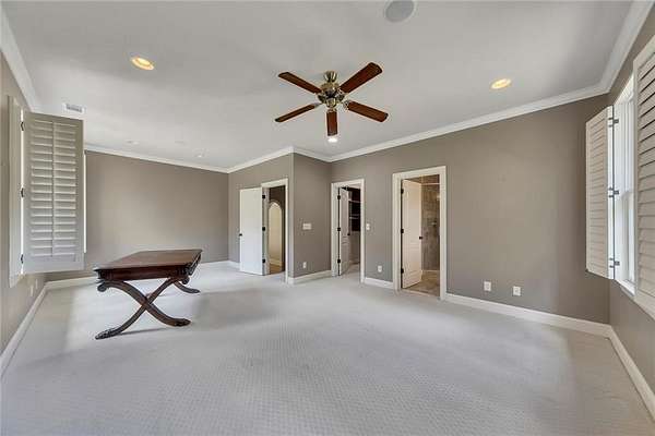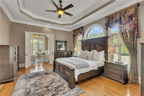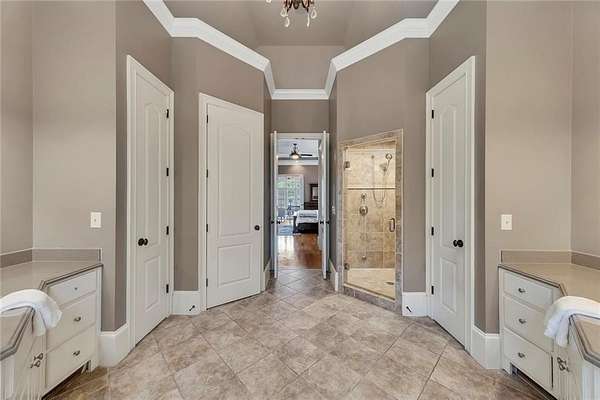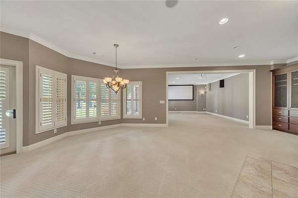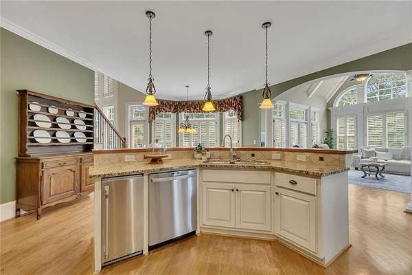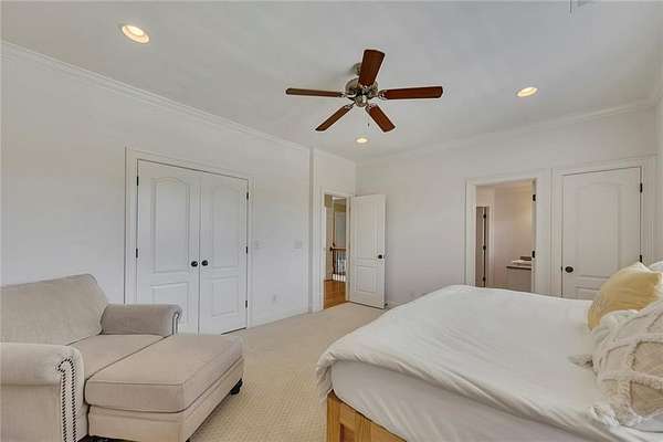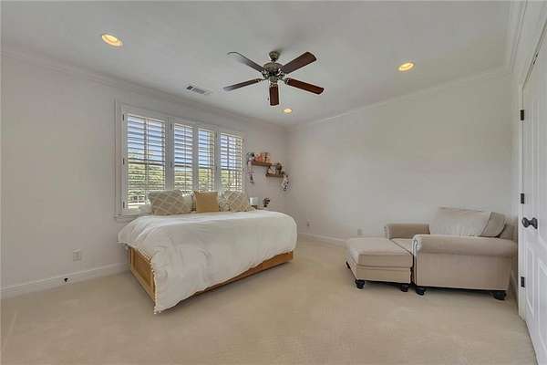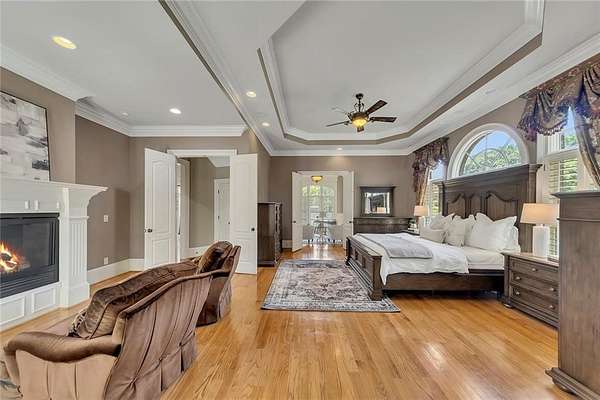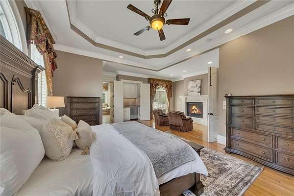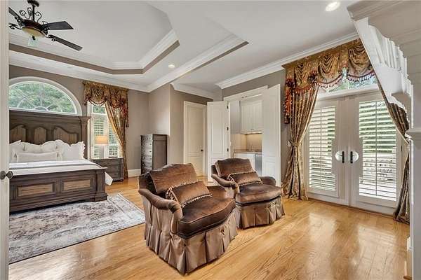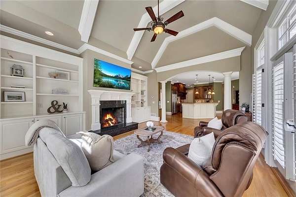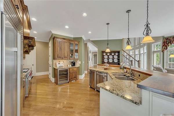 BACK ON the MARKET- Seize this incredible opportunity! The buyer's plans chaned and now this Executie Estate is available for YOU! Welcome to this stunning four-sided brick executive estate situated on 8+ private acres featuring a spring-fed, 2-acre stocked pond. This luxurious residence offers elegant architectural details, custom trim throughout, and soaring ceilings designed for both grand entertaining and comfortable everyday living. The two-story foyer with a curved staircase and iron balusters sets the tone for the home's craftsmanship. French doors lead to a vaulted library with exposed beams, marble gas fireplace, and built-in bookcases. The main-level owner's retreat features a sitting area with fireplace, private coffee bar with sink and refrigerator, custom walk-in closet, and a spa-inspired bath with dual shower heads, whirlpool tub, double vanities, and a picture window overlooking the pond. The heart of the home is the chef's kitchen, complete with: Wolf 6-burner + griddle & double oven, Sub-Zero refrigerator & stainless appliances including Wine cooler, ice maker, warming drawer & butler's pantry. Angled butcher block island & breakfast room with wall of windows Enjoy multiple living spaces including a two-story great room with coffered ceiling, gas fireplace, built-ins, and a wall of windows plus family room off the kitchen with 2 walls of windows, fireplace and bookcases. Formal banquet-sized dining room with columns and heavy trim detail. Biltmore Style back patio with stamped concrete & curved stairs to private backyard The upper level offers 4 generously sized bedrooms and 3 full baths. The finished terrace level is an entertainer's dream, featuring a great room, rec room, theater room, bar with dishwasher & sink, wine cellar, bedroom, full bath, and access to the covered stamped-concrete patio overlooking the pond. Additional features include: 3-car side-entry garage, laundry room with sink & cabinetry, central vacuum system, whole-house generator, irrigated by designated private well and new roof, circular driveway with ample parking ideal for entertaining. Convenient to shopping, medical, airport & Battery (home of the Braves) Experience the perfect blend of privacy, luxury, and serene outdoor living in this breathtaking estate.
