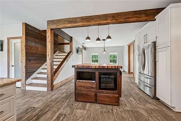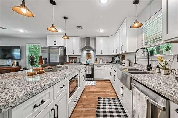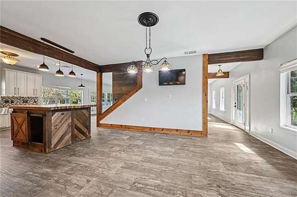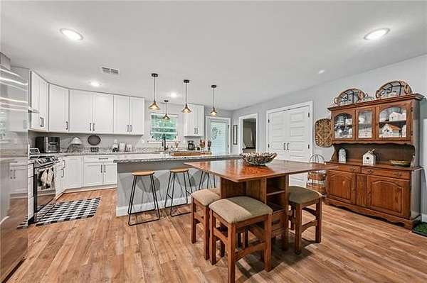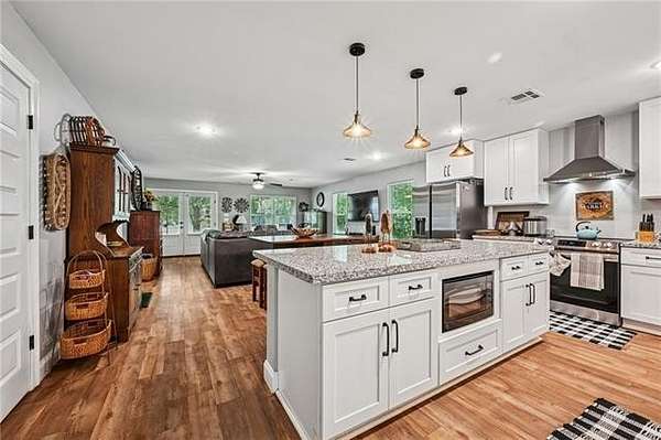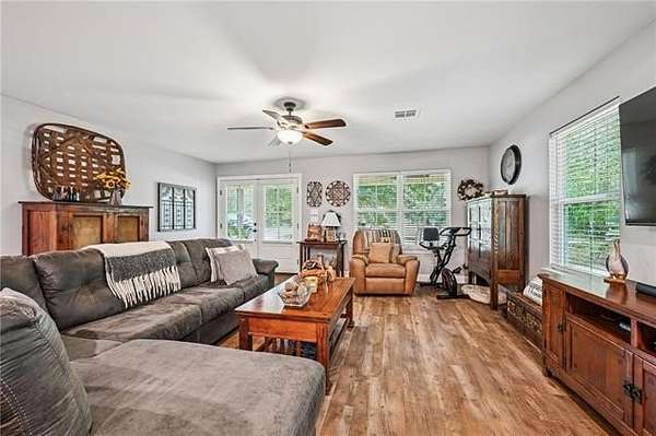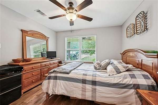 Multi-generational living complete with separate guest house and rental income. Looking onto 6.51-acres with a fully stocked pond, this home and surroundings are designed for comfort, versatility, and recreation. Enjoy peaceful views from the second-story deck or relax on the spacious covered back porch, ideal for seamless indoor-outdoor living. The grounds feature a beautifully stocked pond with fishing dock, a fire pit, and a sandy beach area. Ideal for quiet relaxation or outdoor gatherings. The expansive 4,249-square-foot main residence features 5 bedrooms and 4.5 baths, including two primary suites conveniently located on the first floor. Interior highlights include granite countertops, designer ceramic and bamboo flooring, and abundant natural light throughout. A newer 1,272-square-foot guest house extends the property's living options, offering 2 bedrooms and 2 full baths with granite finishes. Complete with its own private driveway, fenced backyard, storage building, and separate meter, this space is perfectly suited for multi-generational living, guests, or rental income potential. Additional amenities include boat and RV storage, multiple storage sheds, a chicken coop, fenced yard with dog door, and a charming treehouse that adds to the property's unique appeal. A brand-new roof has just been installed, providing added peace of mind.