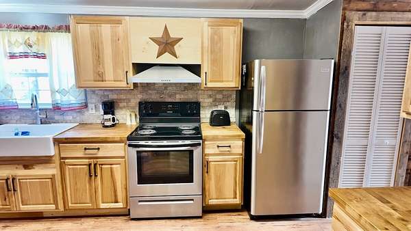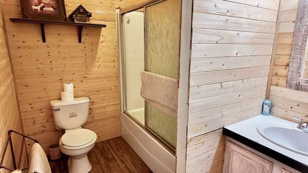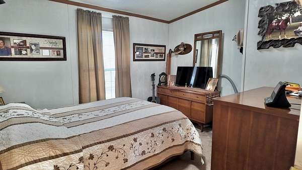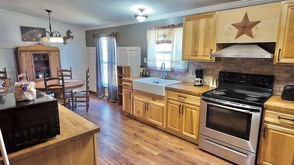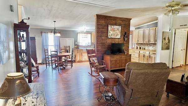 The 3-bedroom, 2-bath home sits in a great spot overlooking parts of the farm. It has a cozy center kitchen and living room layout. Inside, you'll find new flooring in the living room and one of the bedrooms, with freshly updated bathrooms