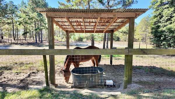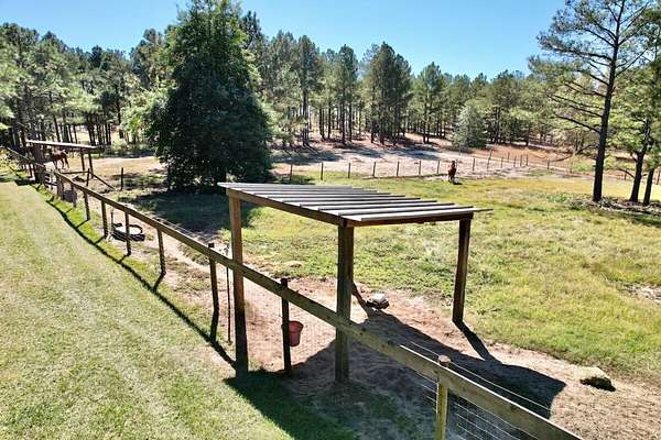 There are 10 fenced pastures of different sizes, and five of them have run-in sheds for shade and shelter. Most of the fencing is strong wood-post and wire, with only a few t-posts mixed in. About 14 acres are still open and unfenced, giving you room to grow or make it your own.