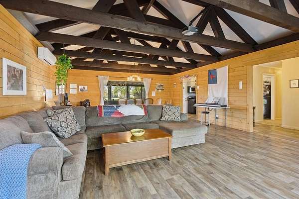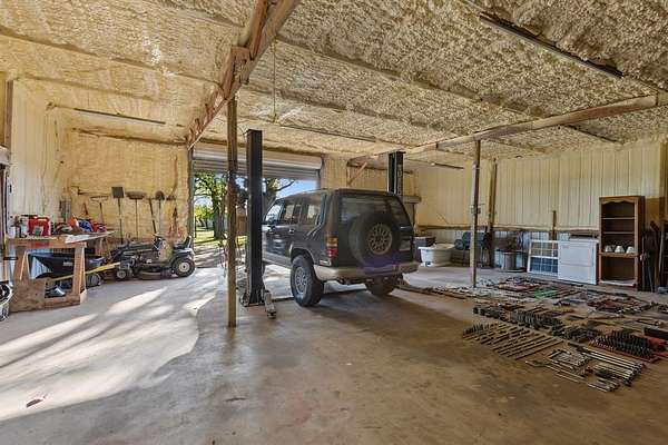 A fully renovated detached man cave or she-shed adds flexible space for hobbies or guests. The impressive 36'x36' shop is every craftsman's dream, offering electricity, foam insulation, a car lift, and ample room for up to three vehicles or additional workspace.
