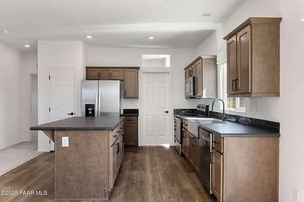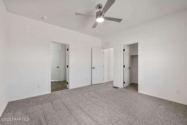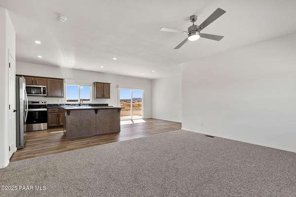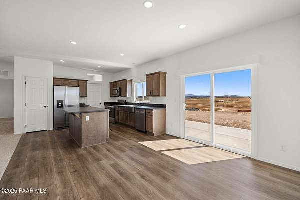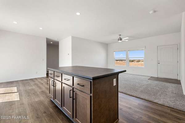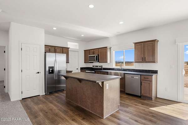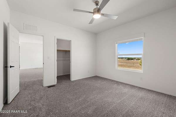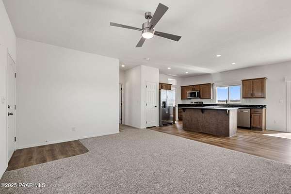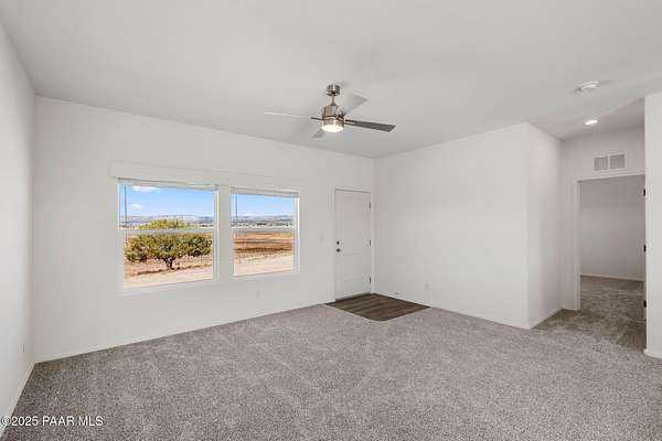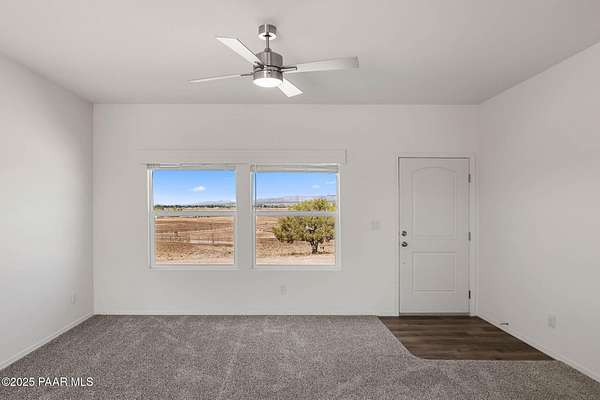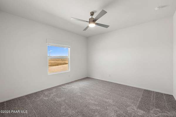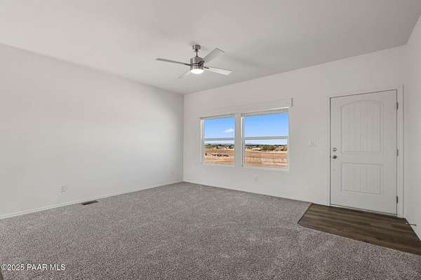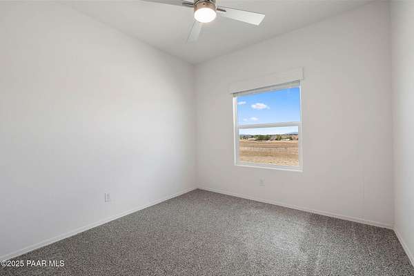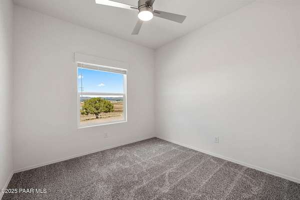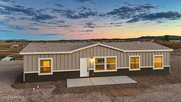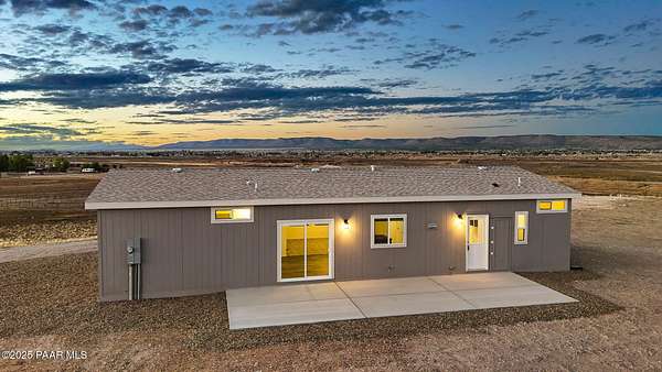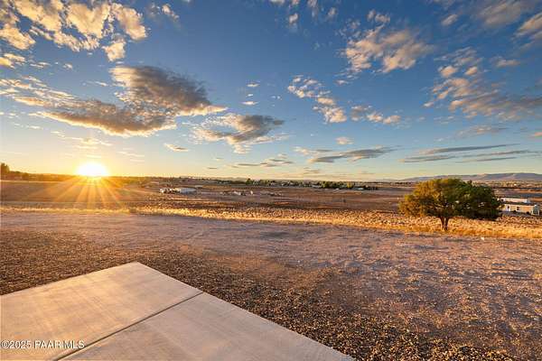 Brand New 4 Bed, 2 Bath on 4.09 Acres!Stunning views, no HOA, and room for animals. Spacious open floorplan with 9' ceilings, elegant finishes, and quality upgrades. Ground-set on block stem wall for durability and seamless entry. Stylish kitchen with stainless appliances and farmhouse sink. Energy-efficient design with architectural shingles and ceiling fans throughout. Private 50 GPM well ensures reliable water. Large front & back patios for entertaining or relaxing. Rural tranquility with modern amenities, close to Prescott & Chino Valley. Includes a 1-Year Home Warranty for peace of mind!