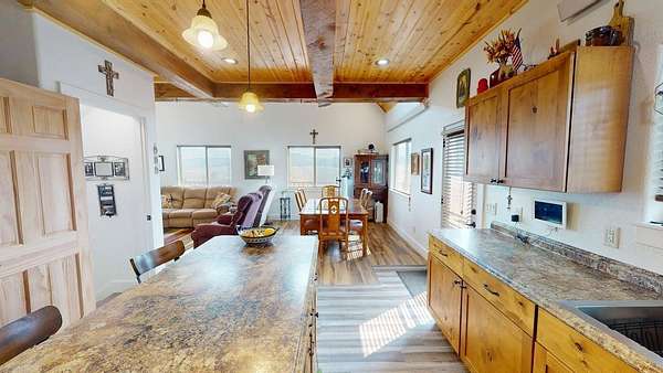 Country living at its finest! Beautiful home situated on a hilltop with AMAZING views of the hills and surrounding areas. Minutes away from Deerfield Lake, fishing, hiking, canoeing, hunting, snowmobiling and so much more just out your back door! This property has recently been remodeled and added on to making this a fabulous space to call home. Step into the home and you are greeted with an amazing open kitchen to the dining area and living room. Huge views out the windows and only steps to the one of the decks this property offers. Head upstairs to the open loft area, full bathroom and a huge master bedroom with 2 walk-in closets. The lower level is where the two other bedrooms are located along with the family room, full bath with a steam shower and pellet stove. This home has such a warm felling with all the natural wood and light throughout. Head outside and you will find a well-lit very well insulated 26x32 utility building along with a 100amp service/full panel that sits out back with plenty of room for cars, equipment and all the toys! An abundance of wildlife frequents this area on a daily basis. Easy access into Hill City, Deadwood and all the Black Hills have to offer. Call Jim or June Peterson today with Integrity Realty for a personal tour! 605-574-4444