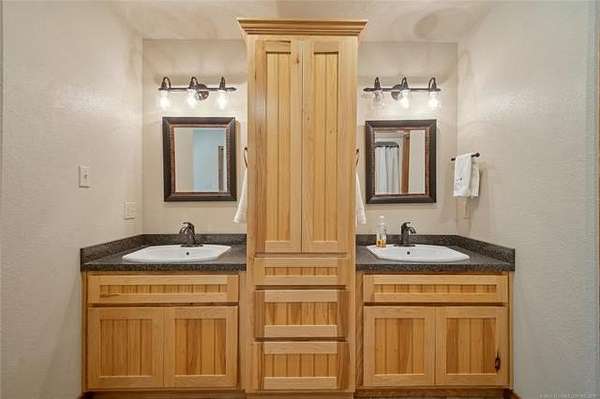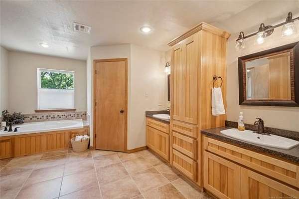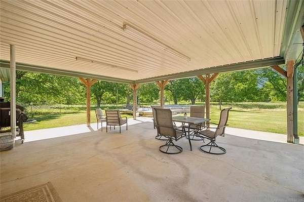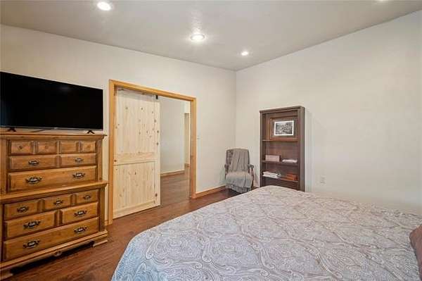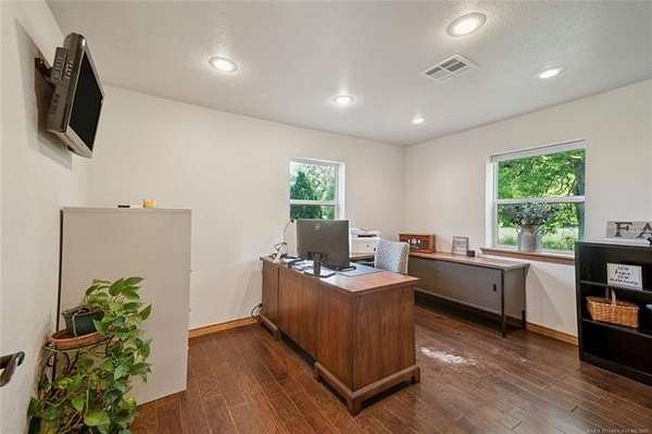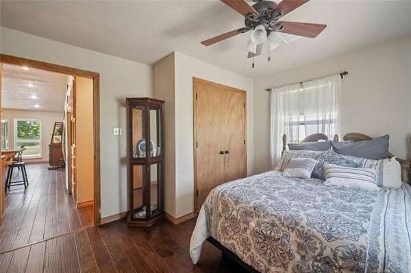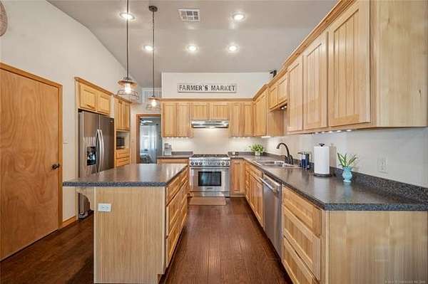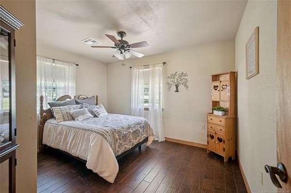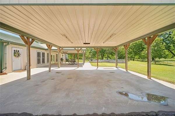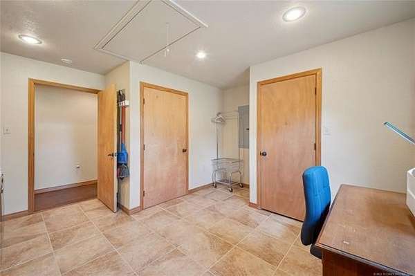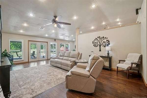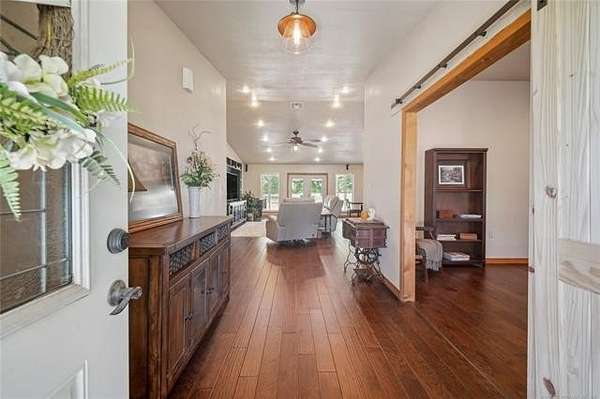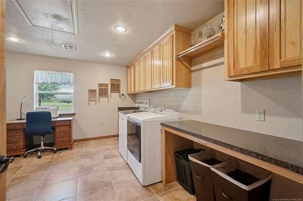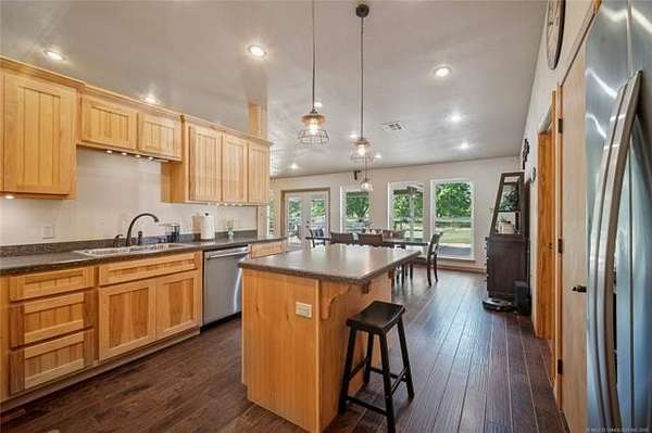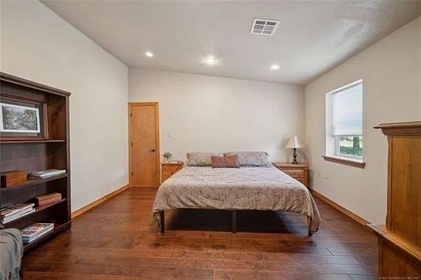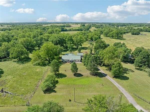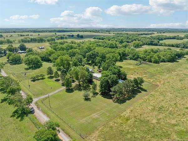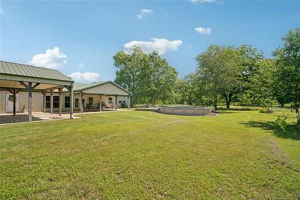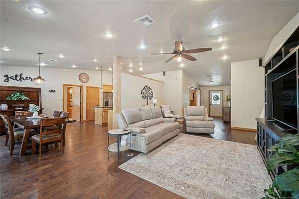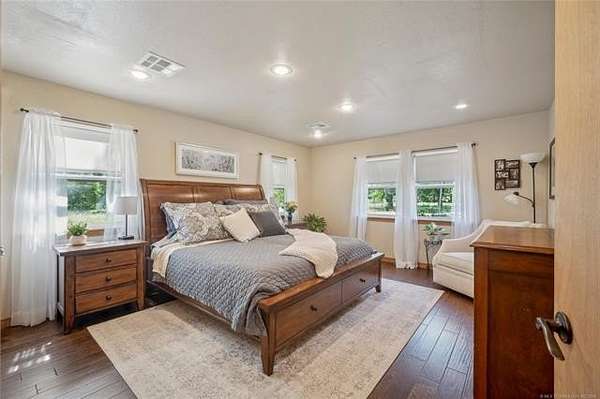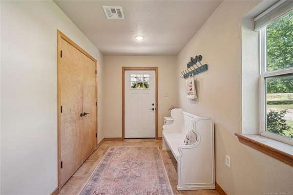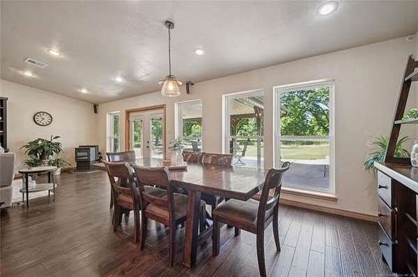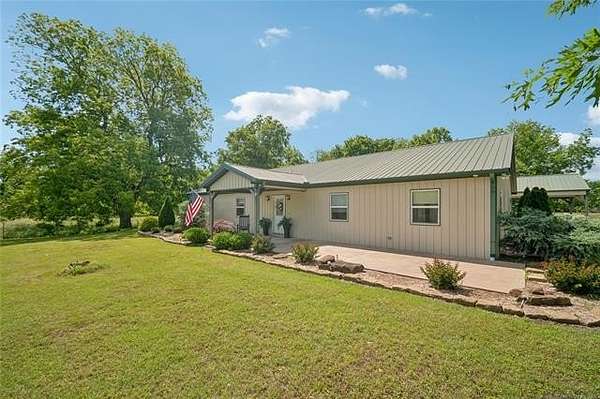 2.5 sprawling acres m/l. This inviting home boasts a well-maintained exterior with a durable metal roof, providing both curb appeal and longevity. The entry opens to beautiful floors that extend throughout the house. The living room is generous, featuring ample natural light from large windows it is perfect for entertaining or relaxing. The kitchen, is a chef's delight, showcasing Custom made Hickory cabinetry and large professional grade gas range. The kitchen also features a convenient island with a breakfast bar. Thoughtful details like under-cabinet lighting enhance the functionality. The spacious master suite offers a private retreat, including a luxurious master bathroom. Featuring dual vanities with ample cabinet storage, a large soaking tub with a tiled surround, and a separate walk-in shower. One of the standout features of this home is the built-in safe room, providing peace of mind and security. The large laundry room is highly functional, complete with cabinetry for storage, a convenient counter space for folding, and a dedicated area that could serve as a home office or craft nook. Step outside to discover an incredible outdoor oasis. The expansive covered patio overlooking the countryside. Enjoy warm Oklahoma days by the refreshing pool. Owner is related to Agent