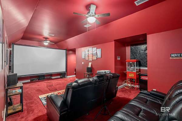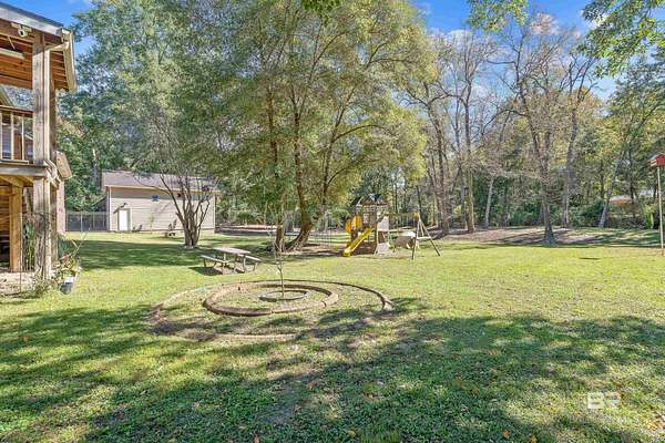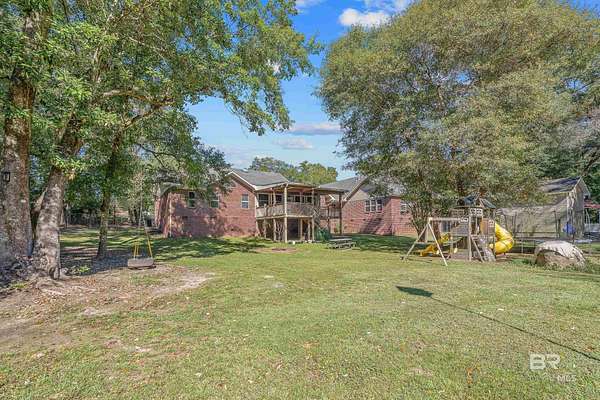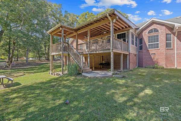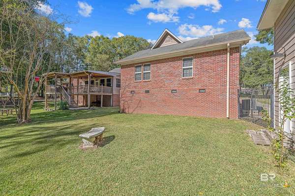 Welcome to 234 Autumn Dr., a unique, expansive estate in the desirable Saraland school district. The approx. 4,780 sq ft home is expertly designed for luxury and entertaining, featuring 5 flexible bedrooms, 3 full, and 4 half baths. The interior boasts 10ft ceilings, hardwood floors, and a bright, open plan with a formal dining area and a living room featuring a marble fireplace. The chef's dream kitchen is the heart of the home, offering vast cabinet space, a huge center island, walk-in pantry, and double wall ovens for hosting. The luxurious primary suite features raised ceilings and an ensuite bath with dual vanities, separate walk-in shower, garden tub, and a truly HUGE, must-see walk-in closet. This home provides maximum flexibility: a designated home office, a second main-floor bedroom with a full private bath, and the third and fourth bedrooms sharing a Jack-and-Jill bath. Additional spaces include an upstairs large flex room (currently a theater) or 5th bedroom with a half bath, plus a full, unfinished basement with another half bath. The private outdoor oasis features a large, covered deck overlooking the expansive backyard, complete with mature oak trees, young adult fruit trees (fig, plum, peach), and a clear creek running along the back property line. Practical amenities include an attached 3-car garage, a separate RV/Boat storage building (ideal as a workshop), and a steel structure for extra vehicle protection. This Smart Home is equipped with a sprinkler system, new remote-controlled Google Nest thermostats (2024), and a camera security system (no subscription required). Major recent upgrades (2022-2025) ensure peace of mind, including a new AC unit (2024), new water heater (2025), new flooring/paint, a new rustic knotty alder front door (2022), new gutters (2023), new remote-controlled garage doors (2023), and new lighting/fans throughout. Don't miss this opportunity for space, luxury, and prime location! Buyer to verify all information during due di