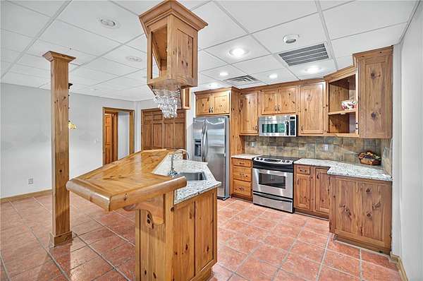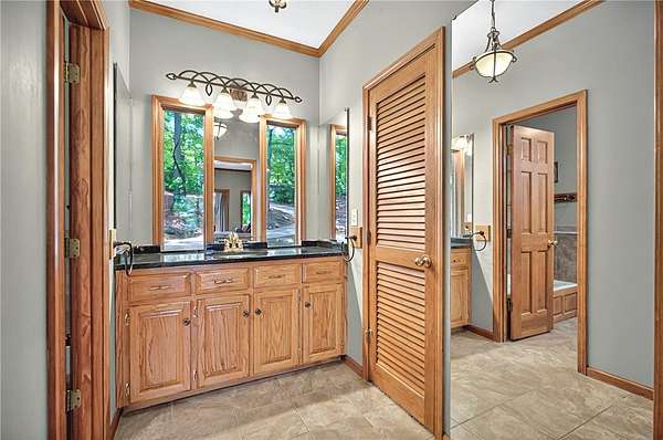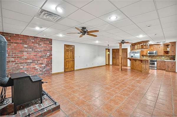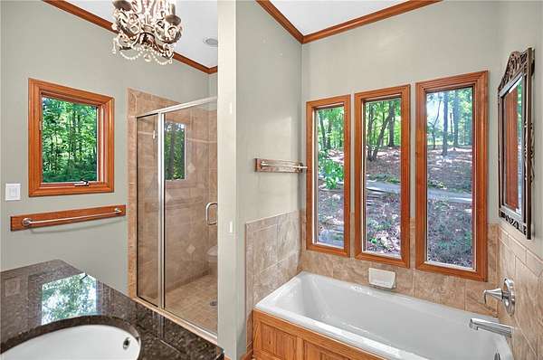 - Bath In Primary Bedroom, Bookcases, Built In Features, Cable Tv, Cathedral Ceilings, Ceiling Fans, Fireplace, Garden Tub Roman Tub, Main Level Primary, Multiple Primary Suites, Second Kitchen, Separate Shower, Smooth Ceilings, Solid Surface Counters, Suspended Ceilings, Walk In Closets, Walk In Shower, Wet Bar