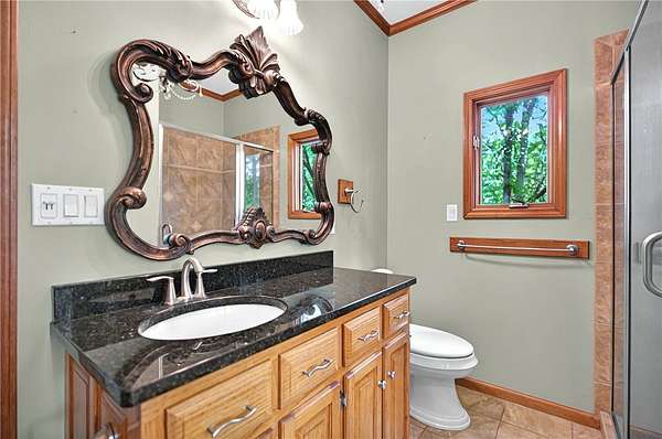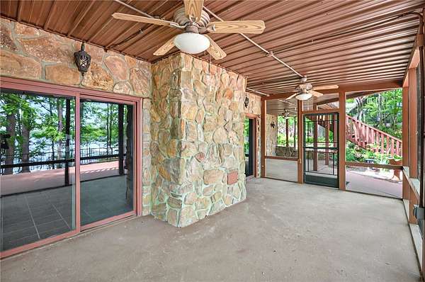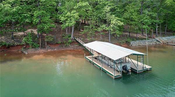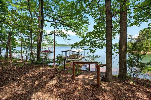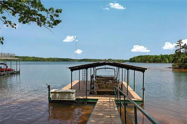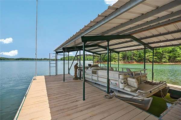 One of the most exquisite lots on Lake Hartwell! This 1.89 acre property offers privacy and spectacular wide open water views. Home features lake views from every room. Great room has cathedral ceiling, rock surround fireplace and rustic exposed beams. Kitchen includes all stainless appliances, double oven, built in microwave, tile back splash, solid surface counters and tile floor. Two owner suites on the main level both have high ceilings, full bathrooms, walk in closets and direct access to the lakeside deck. Lower level can be a self contained living area, 2nd full sized kitchen with stainless appliances, solid surface counters, 2nd laundry room, rec/family room with wood burning stove, two full bathrooms and two lakeside bedrooms each with glass doors to covered patios. Gentle slope to the covered slip dock on BIG OPEN sailboat waters with awesome sunsets. Other property attributes: Three car detached garage, two car/boat carport, metal roof, roll out windows, foyer, circular drive and a beautiful garden with meandering paved pathway, stone steps, azaeleas, japanese maple, hosta, evergreen bushes and archway. Most of the right side property line borders corp property and will always remain wooded and private. With county approval, may be possible to build a second home to create a family compound. This is truly a unique setting and must be viewed to truly appreciate.