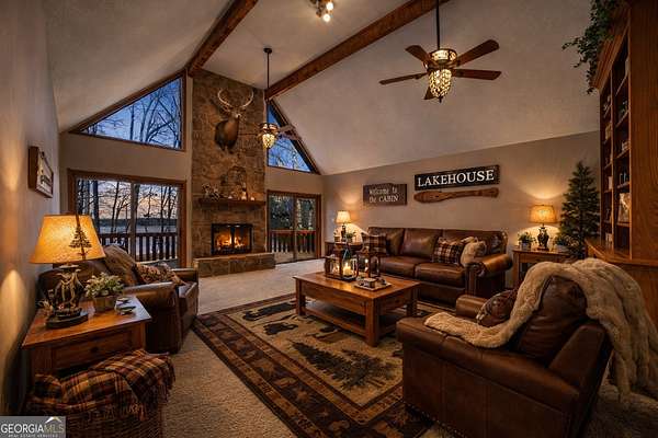 Lake Hartwell Classic Craftsmanship | Paynes Creek Perfection Welcome to Lake Hartwell Classic Craftsmanship-a beautifully maintained, warm-rustic lake retreat on 1.89 Acres, offering 3,496 square feet of cozy, character-rich living in the highly desirable Paynes Creek area of Lake Hartwell. Here, lake recreation isn't just nearby-it's right in your own backyard! And with 234 feet of lake frontage, there's no shortage of enjoying beautiful Lake Hartwell from this home. The thoughtfully designed home features 4 spacious bedrooms and 4 full bathrooms, perfectly suited for hosting family and friends or enjoying peaceful weekends at the lake. Inside, timeless craftsmanship takes center stage with beamed, vaulted ceilings, custom built-in bookcases, and a stunning custom rock fireplace that anchors the main living area. Additionally this home features laundry on both the main and lower floors, and has a whole-house dehumidifier installed. Adirondack-style windows flood the home with natural light while framing serene wooded and water views, creating an inviting atmosphere that feels both grand and intimate. Comfort meets character with high ceilings, a wood-burning stove, and HVAC, making this a true four-season lake home. The property sits on a beautifully wooded lot, offering privacy and that sought-after "tucked-into-the-trees" lake vibe. Step outside and follow the short, gentle walk to your covered dock, the perfect spot for summer lounging, boating, swimming, and sunset watching. The lower level offers endless potential-imagine adding a hot tub, outdoor kitchen, or both-transforming this space into your own private lakefront oasis for every season. If you're looking for classic craftsmanship, timeless style, and the ultimate Lake Hartwell lifestyle, this Paynes Creek gem delivers it all.