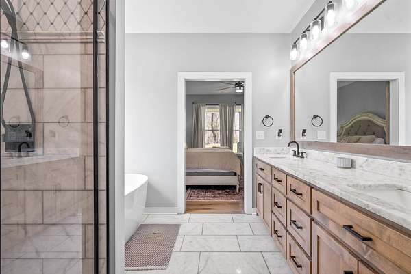 This home also includes two versatile bonus rooms, perfect for a home office or play area. Step outside to your large covered back porch, featuring impressive cathedral ceilings, an outdoor half bath, all perfect for relaxing or entertaining while enjoying the picturesque surroundings. An attached heated & cooled two-car garage adds convenience to this exceptional property. Immerse yourself in modern luxury and country charm in this remarkable farmhouse! Video and Floor plans attached