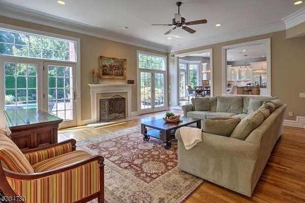 Nestled on 7 private acres, this stunning Georgian Colonial exudes both elegance & style. The grand 2 story foyer sets the tone for this exceptional masterpiece. Dramatic 10' first floor ceilings enhance the elegant formal living & dining rooms with fireplaces with deep custom millwork & hardwood floors. The gourmet kitchen is the heart of this home with its large center island & recently updated top of the line appliances. A butler pantry & large walk-in pantry are thoughtfully accessible. Both the breakfast area & great room with a wood burning fireplace open to the fabulous patio & pool area. A large conservatory is accessed from either the living room or great room. Enjoy TV on the covered portico overlooking the pool & waterfall. There is a private library on the first level in addition to 2 powder rooms, laundry & mud room & back stairwell. On the second level, there is a luxurious primary bedroom suite complete with tray ceiling & fireplace. The sitting room & luxurious bath offer a quiet retreat. There is an en-suite bedroom & 2 more bedrooms each with a walk-in closet that share a bath There is a spacious ensuite ideal for guests or live-in. The flex laundry/studio offers unlimited possibilities. Additional amenities abound in the lower finished 2,250 sq feet space thoughtfully designed with a fabulous recreation area, soda bar & windows overlooking the exercise room There is a media room, game room & full bath with a steam shower & storage abounds.