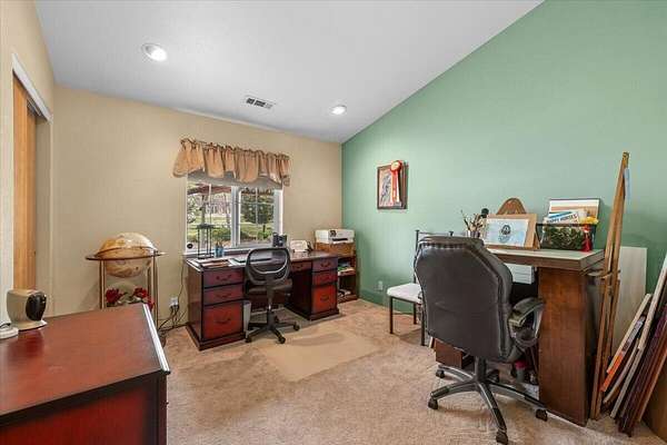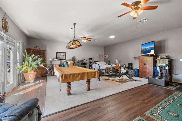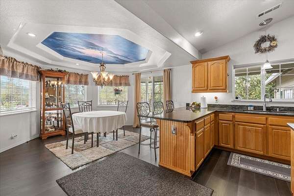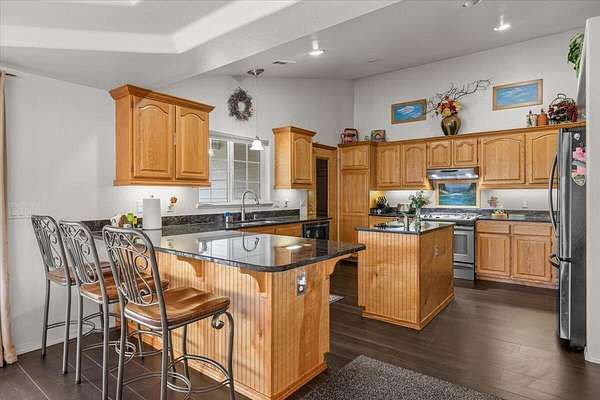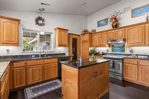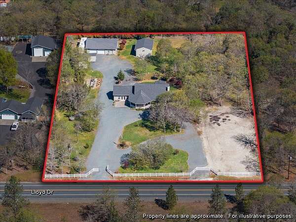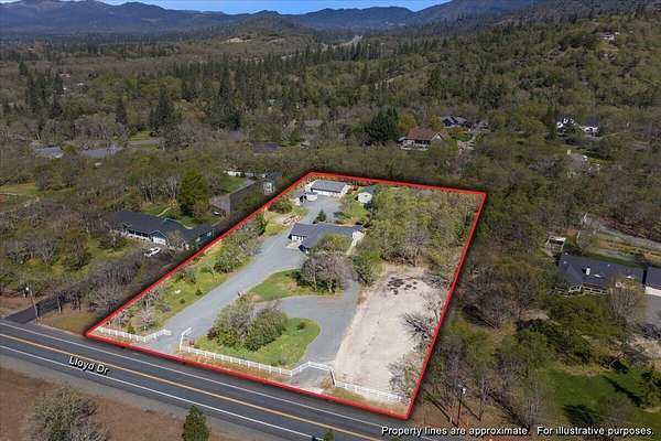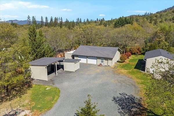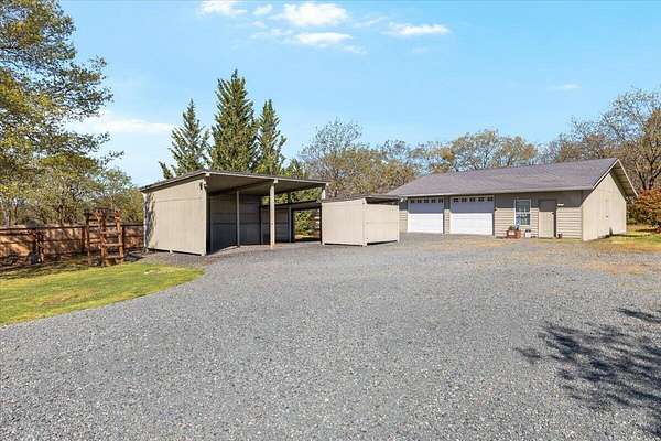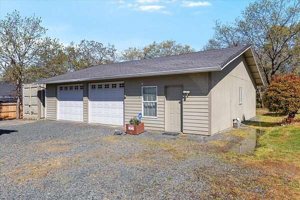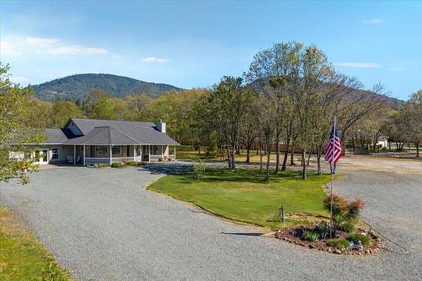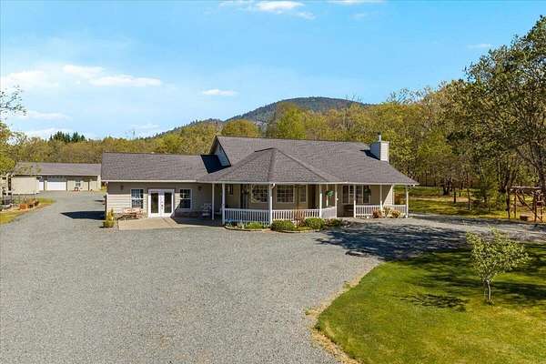 Single-story ranch nestled in the scenic Colonial Valley of Grants Pass. This immaculate 2,518 sq ft home offers 3 bds, 2.5 ba, vaulted ceilings, & abundant natural light. The spacious country kitchen features granite counters, stainless appliances/gas cooktop, island w/ prep sink, & flows into inviting living spaces w/ cozy gas/wood-burning fireplace & large bonus room. 2 Spacious primary suites w/ sliders to the back yard, tile walk-in shower plus spa tub. Equestrian-ready w/ 2 arenas, 2-stall barn that converts to birthing stall w/paddock, rubber mats & feed/storage space, plus a 40' storage container. Property is fenced/cross fenced & features gated entry & circular drive plus ample RV/trailer parking w/hookups. As if this weren't enough, you won't believe the impressive (30x40) 2-bay shop w/ office & bath, carport, spacious deck w/gazebo, raised garden beds, grapevines, cherry & apple trees. Easy access to I-5 & downtown Grants Pass & all set against breathtaking mountain views!